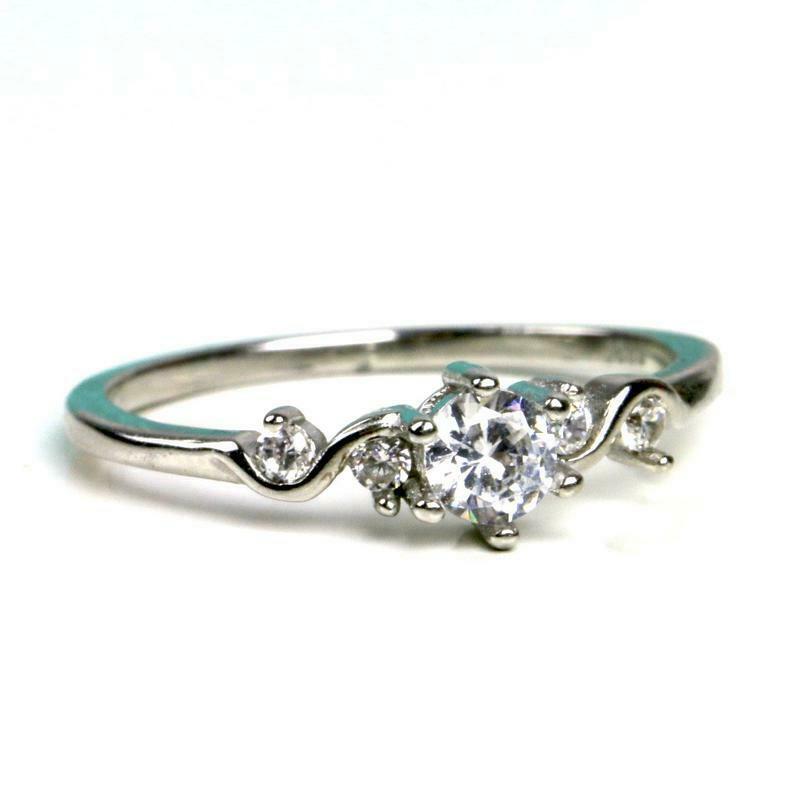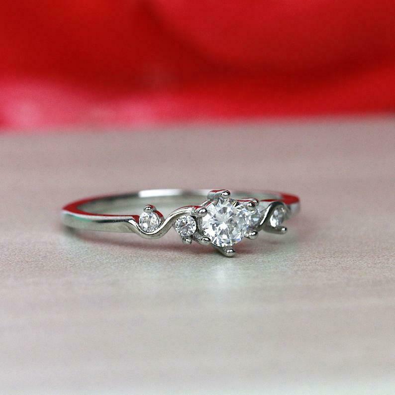 0.9ct Round Diamond Engagement Ring Petite Dainty Stackable 14k White Gold Over