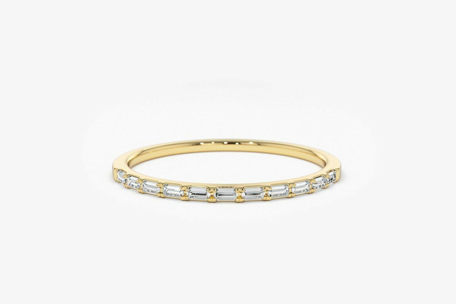 0.9ct Wedding Band Baguette Cut Diamond Minimalist Design 14k Yellow Gold Finish