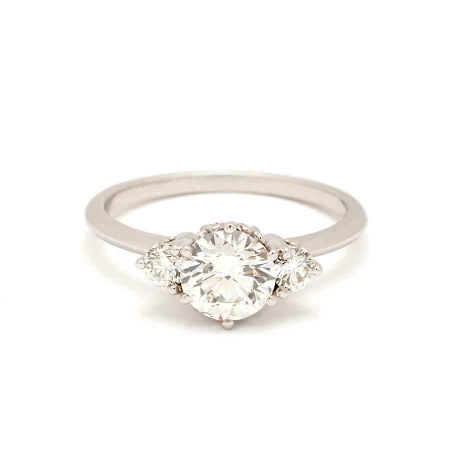 1.14ct Round Cut Diamond Engagement Ring 14k White Gold Finish Trilogy Solitaire