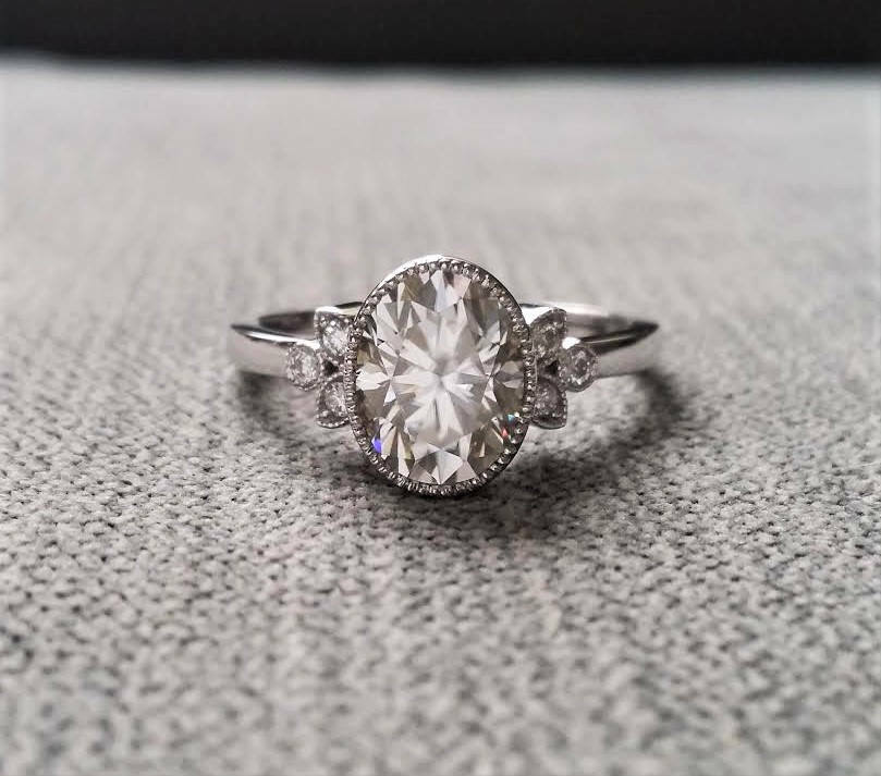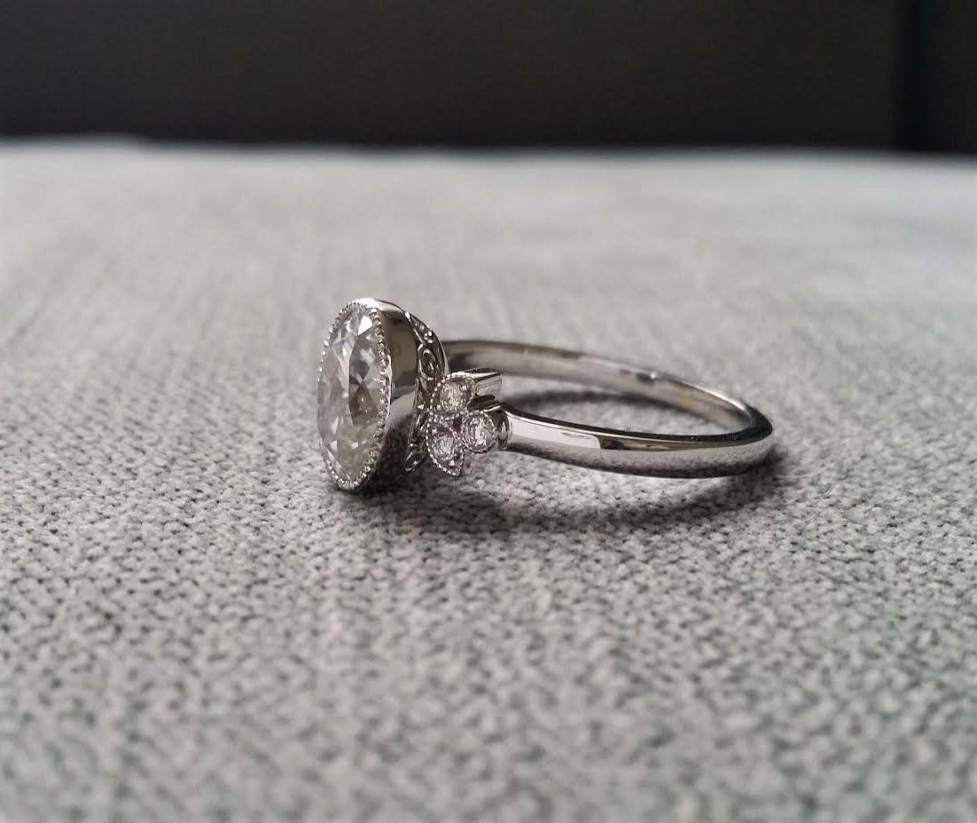 1.1Ct Oval Cut Diamond Vintage Milgrain Engagement Ring 14K White Gold Finish