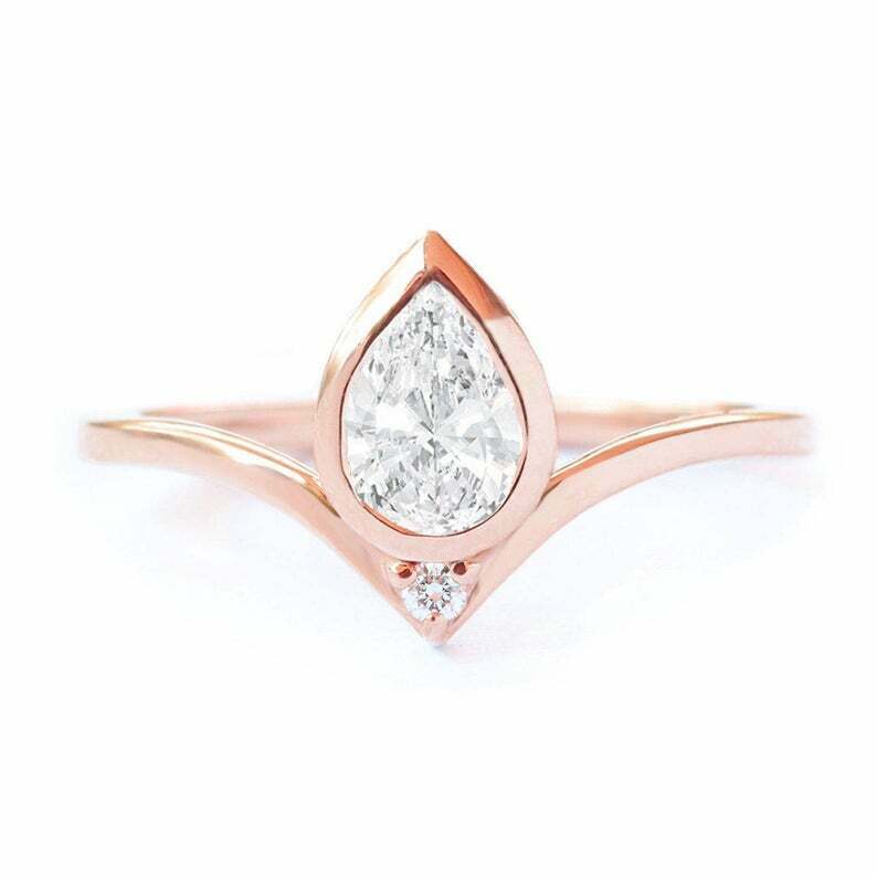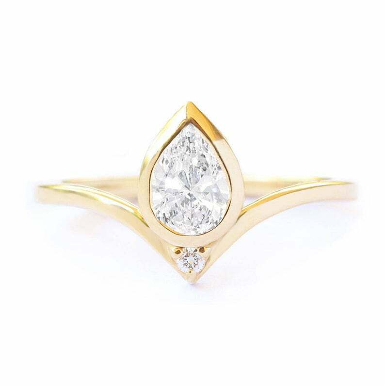 1.1ct Pear Cut Diamond Wedding Band Curved Chevron Crown 14k Yellow Gold Finish