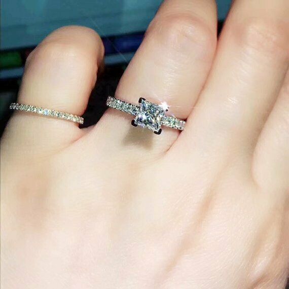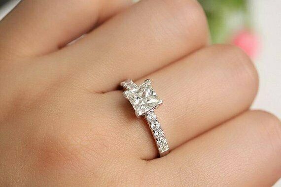 1.1ct Princess Cut VVS1 Diamond Accent Engagement Ring 14k White Gold Finish