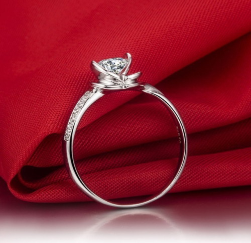 1.1ct Round Cut Diamond Engagement Ring 14k White Gold Finish Heart Flower Women