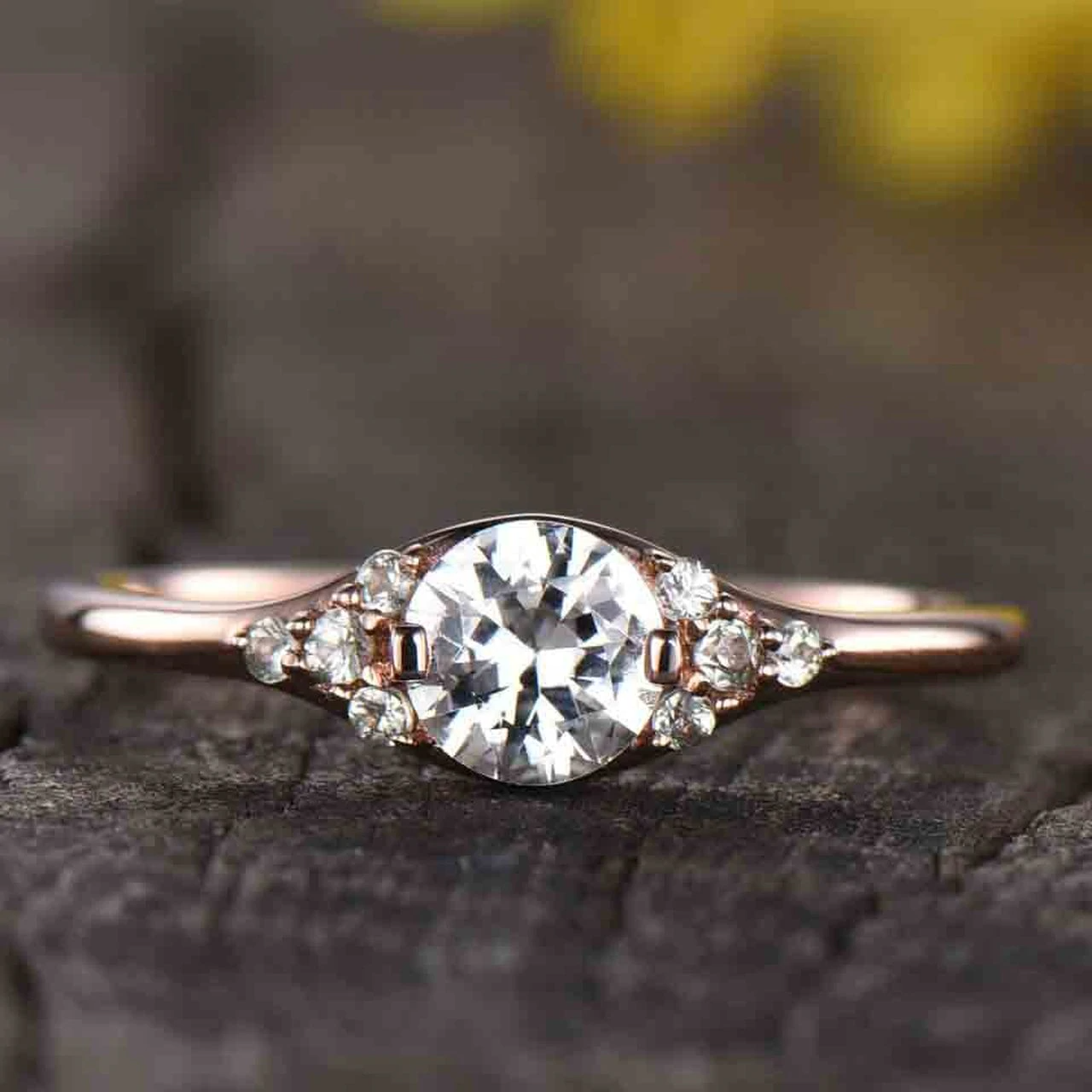 1.1ct Round Cut Diamond Solitaire with Accent Engagement Ring 14k Rose Gold Over