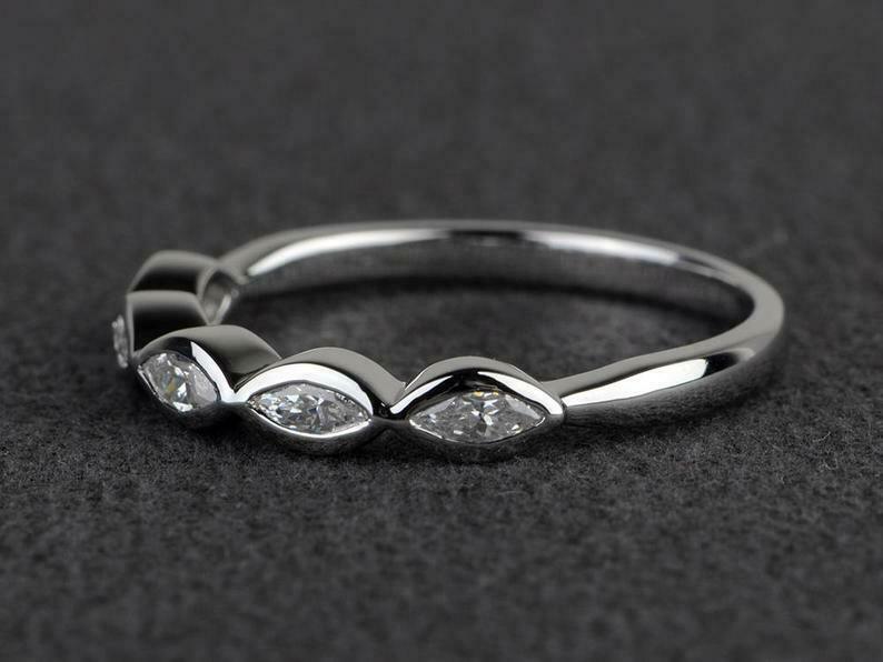 1.1ct Wedding Ring Band Marquise Cut Diamond Half Eternity 14k White Gold Finish