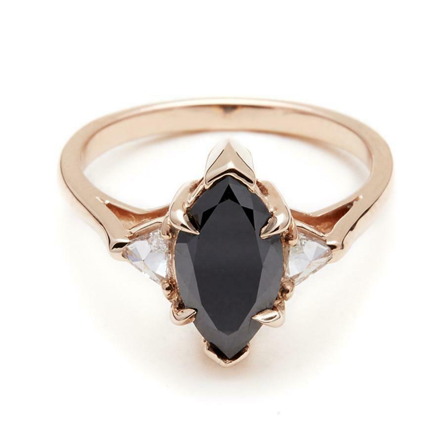 1.25ct Marquise Cut Black Diamond Engagement Ring 14k Rose Gold Finish Trilogy