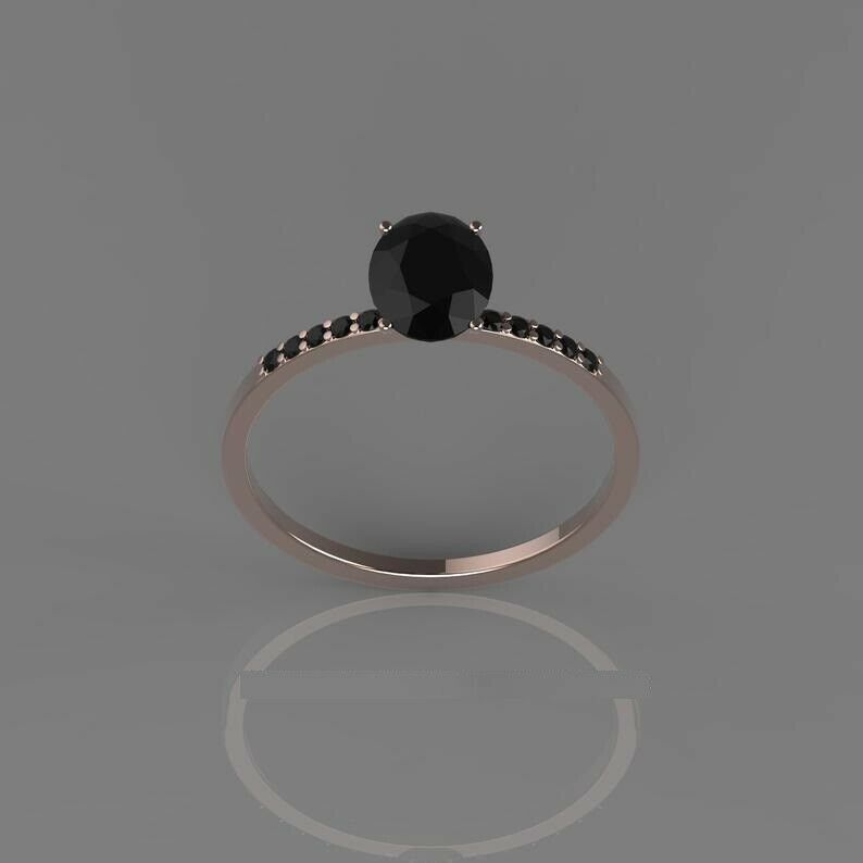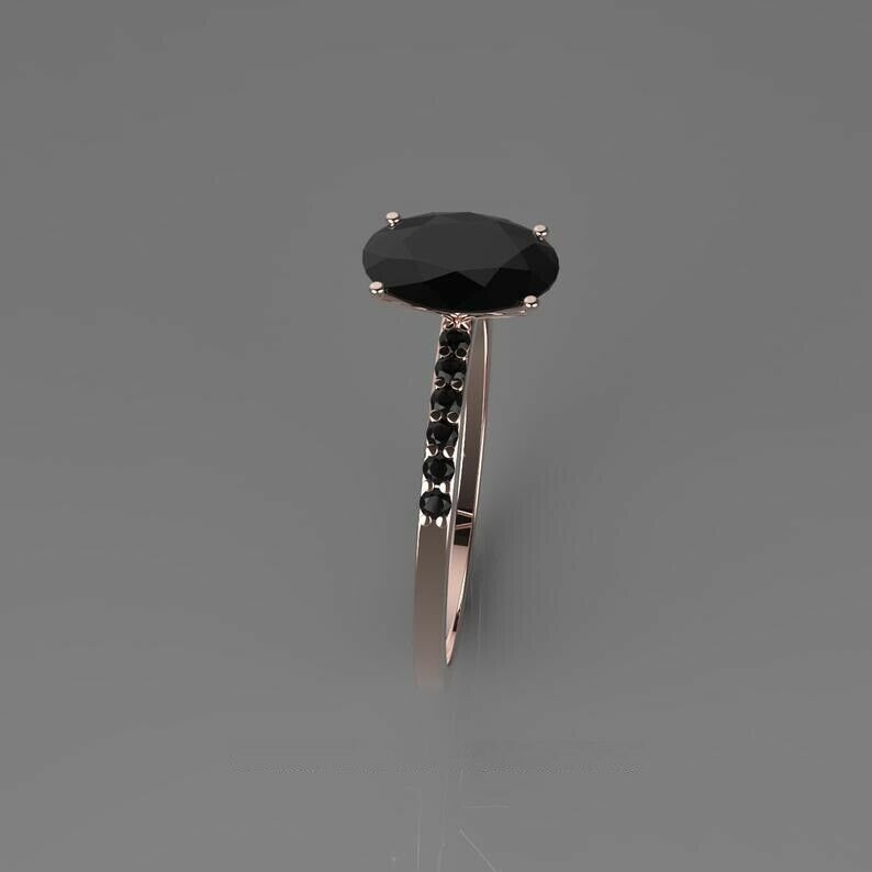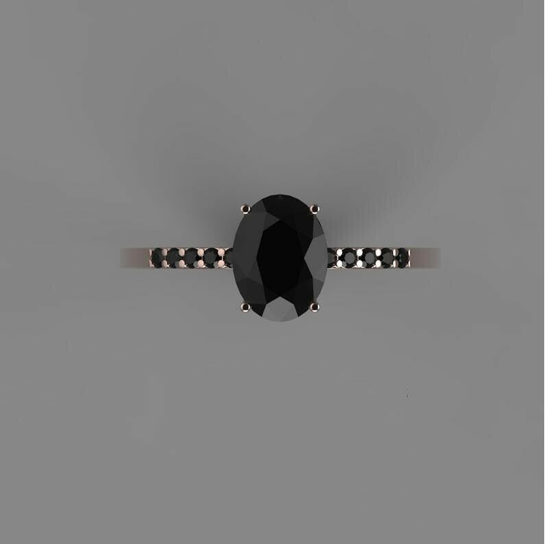 1.25ct Oval Cut Black Diamond Engagement Ring Accents Solitaire 14k Rose Gold Finish
