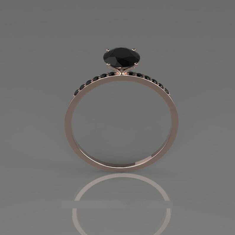 1.25ct Oval Black Diamond Engagement Ring Accents Solitaire 14k Rose Gold Finish