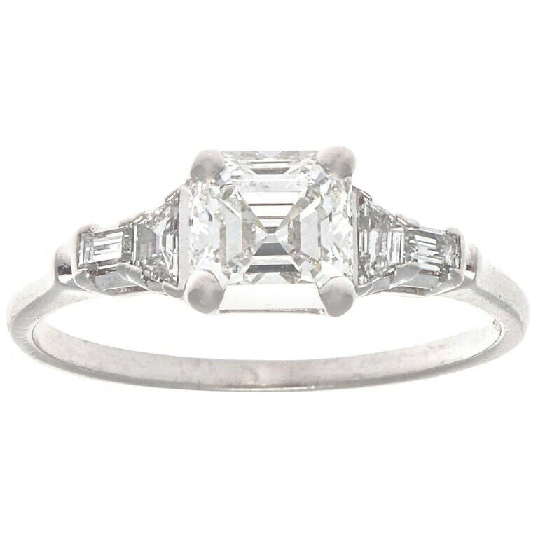 1.2ct Asscher Cut Diamond Engagement Ring 5 Stone Solitaire 14k White Gold Finish