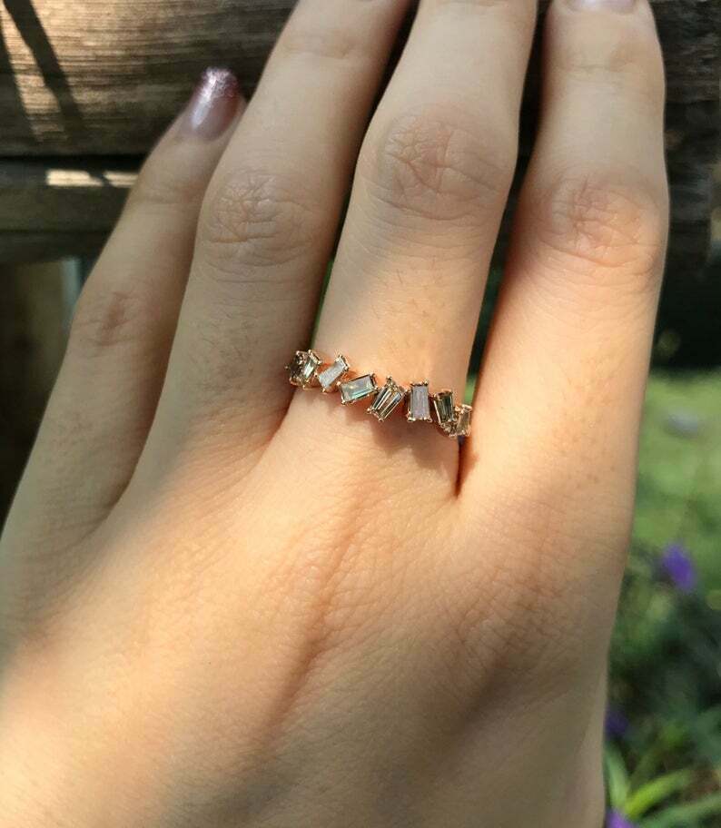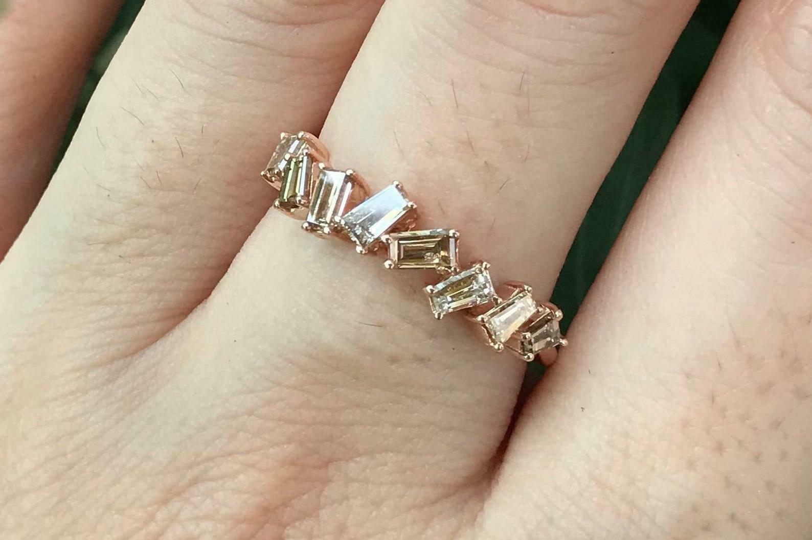 1.2ct Baguette Champagne Diamond Wedding Band Half Eternity 14k Rose Gold Finish