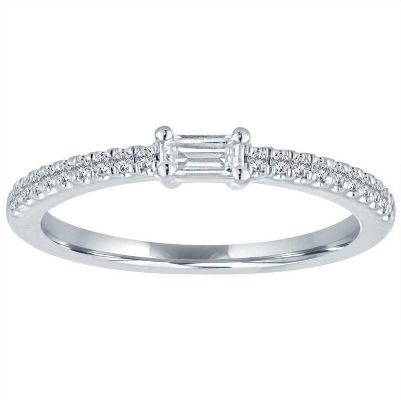 1.2ct Baguette Cut Diamond Engagement Ring 14k White Gold Over Accents Solitaire