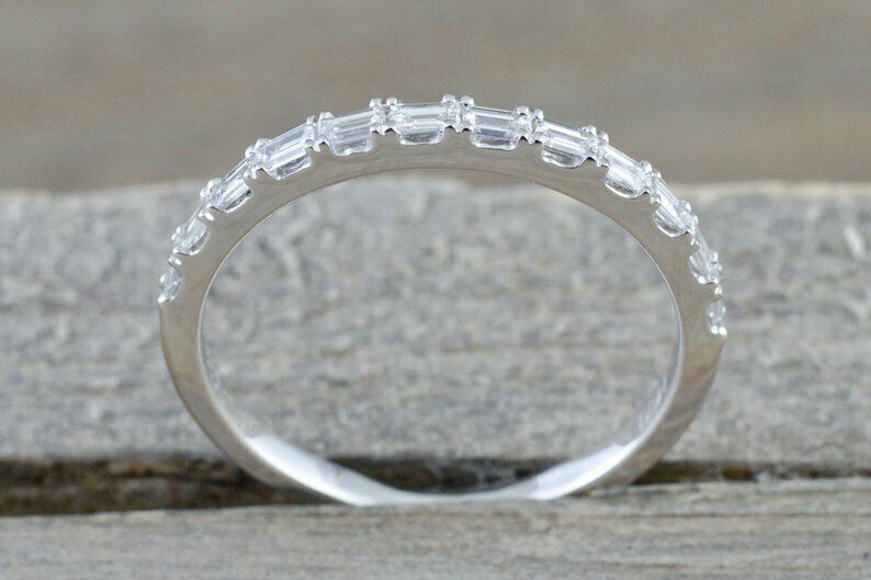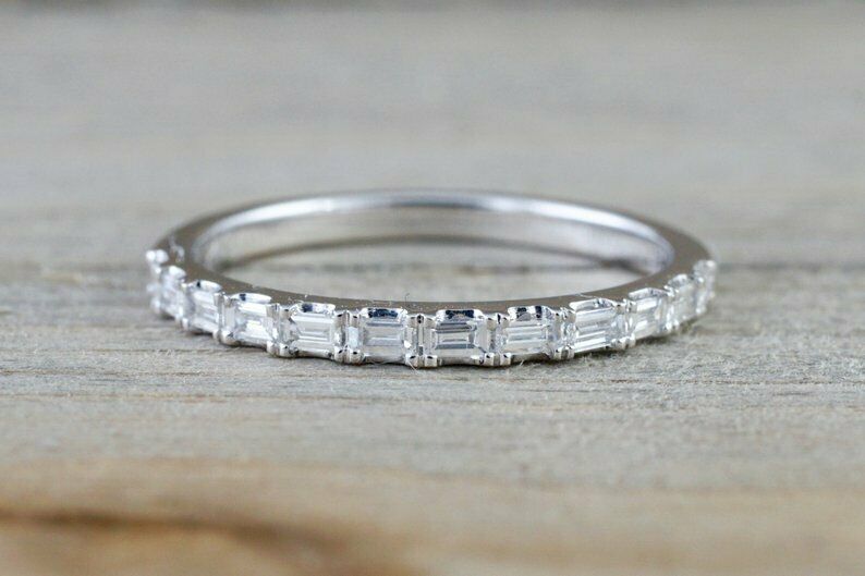 1.2ct Baguette Cut Diamond Wedding Band Half Eternity Trendy 14k White Gold Over