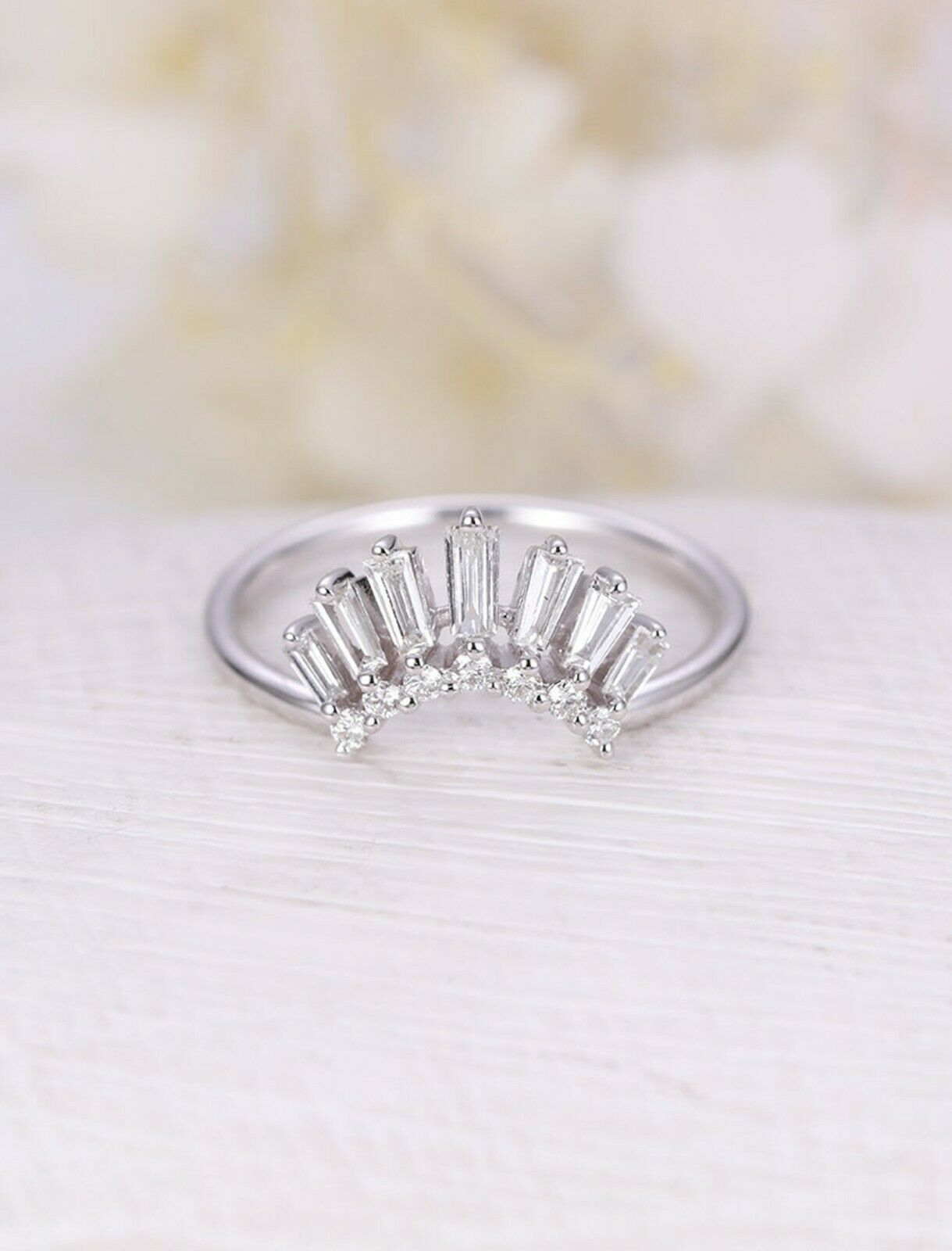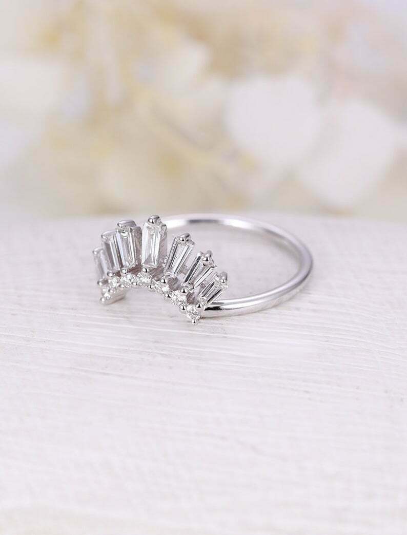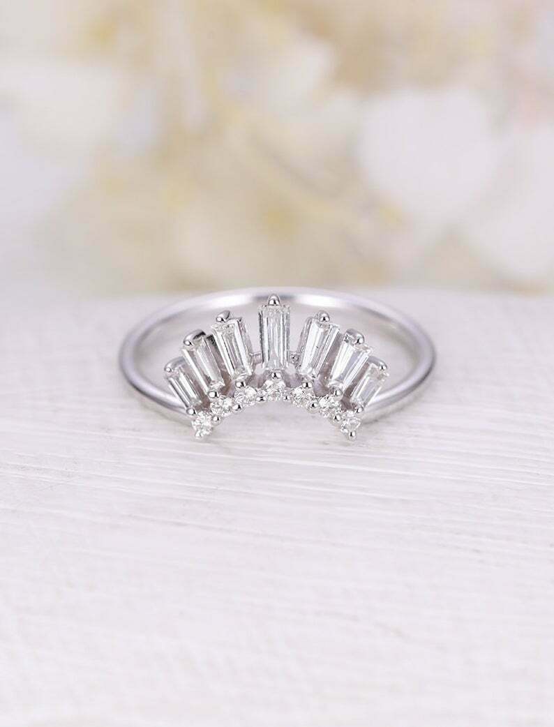 1.2ct Baguette Cut Diamond Wedding Ring Band Curved Crown 14k White Gold Finish