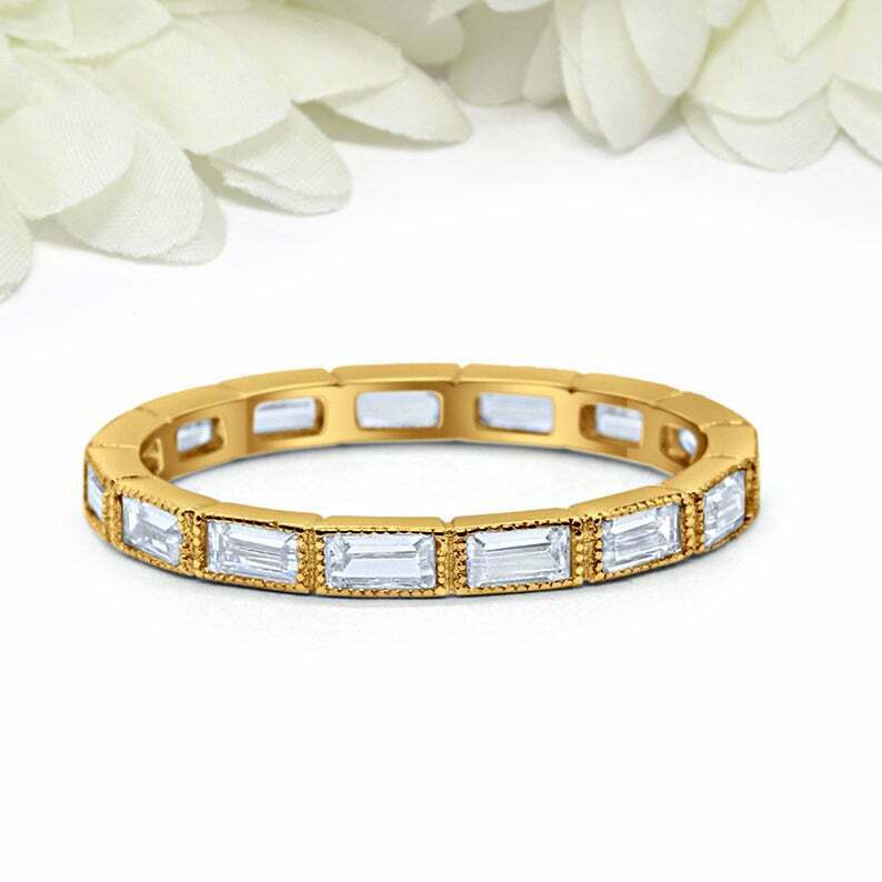 1.2ct Baguette Cut VVS1 Diamond Wedding Band Full Eternity 14k YellowGold Finish