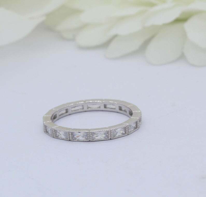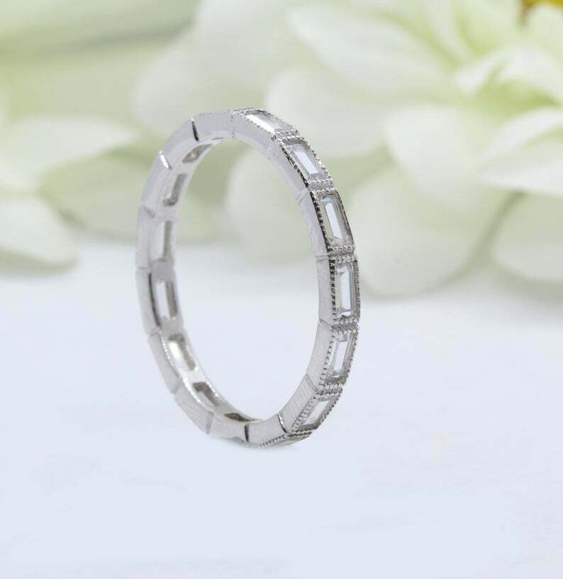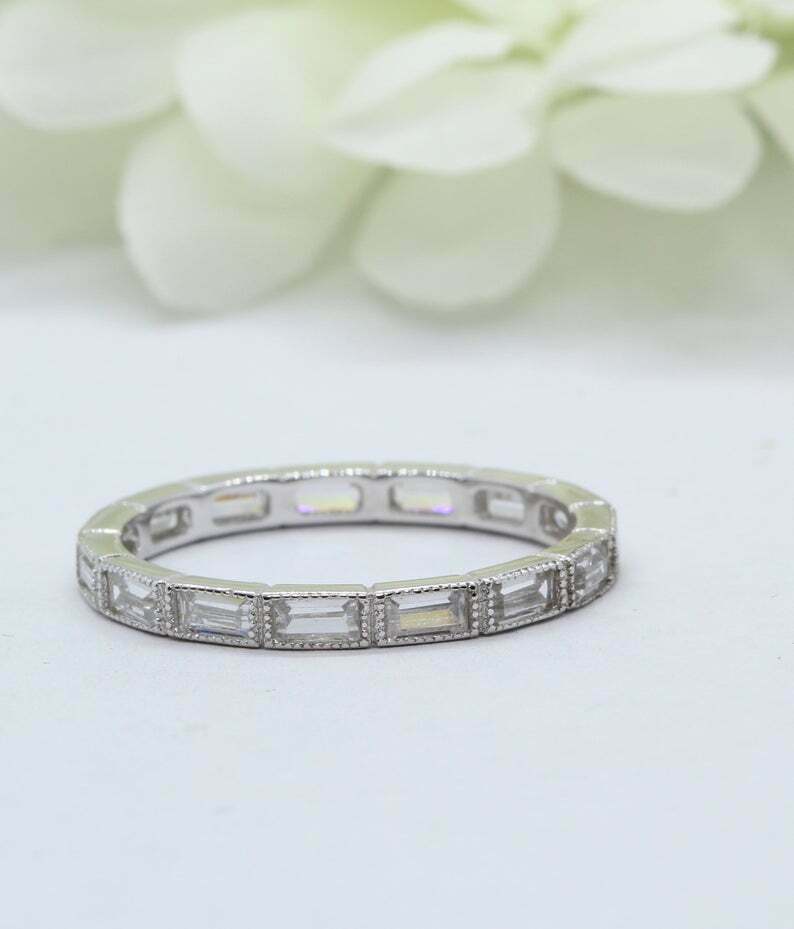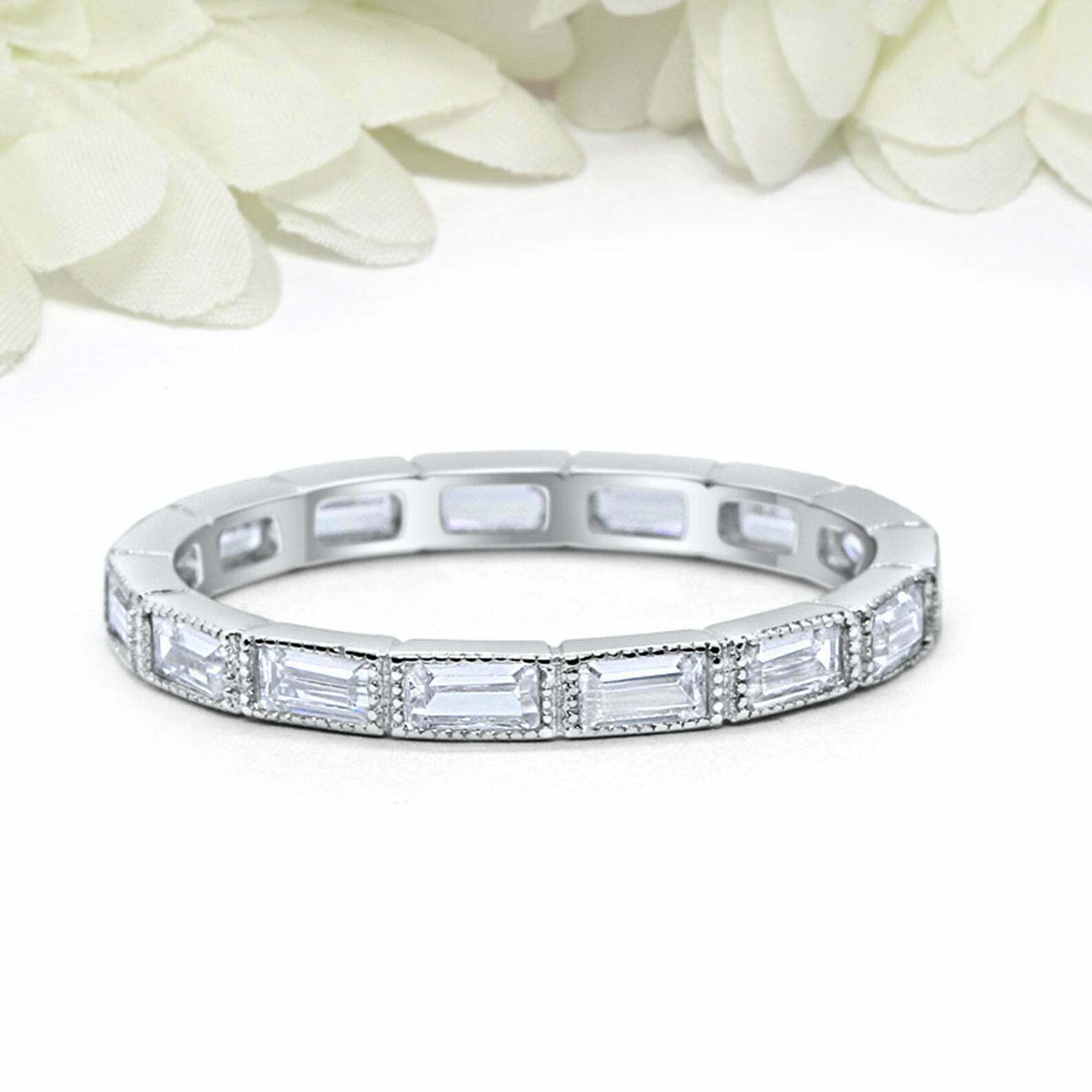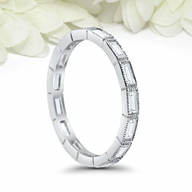 1.2ct Baguette Cut VVS1D Diamond Wedding Band Full Eternity 14k WhiteGold Finish