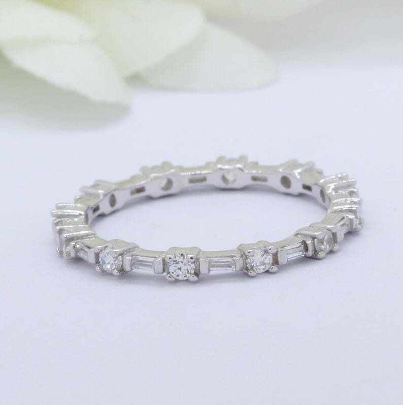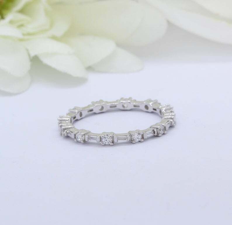 1.2ct Baguette Round Cut Diamond Wedding Band Full Eternity 14k WhiteGold Finish