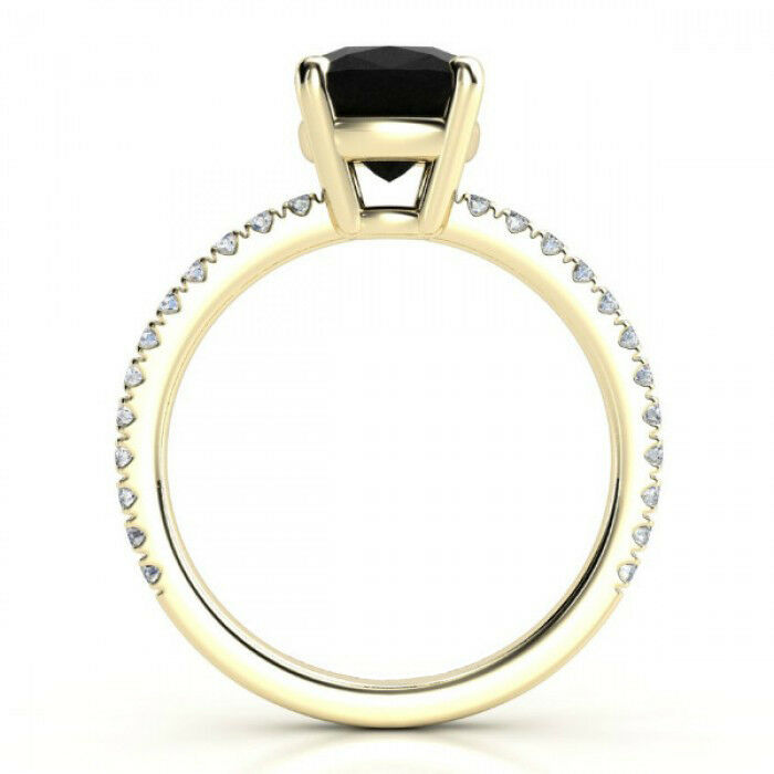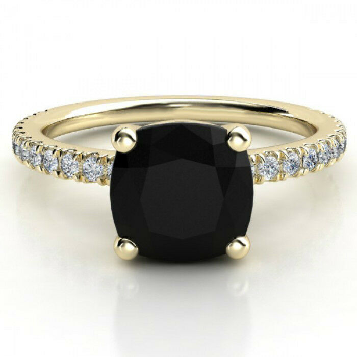 1.2ct Cushion Cut Black Diamond Solitaire Engagement Ring 14k Yellow Gold Finish