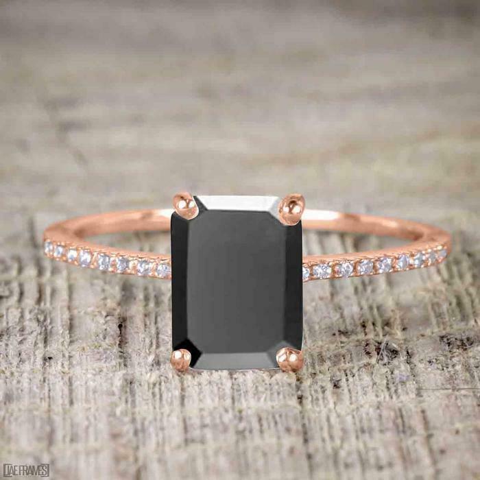 1.2ct Emerald Black Diamond Engagement Ring 14k Rose Gold Over Solitaire Promise