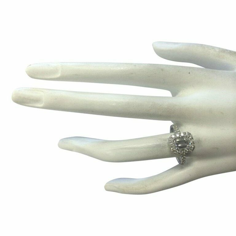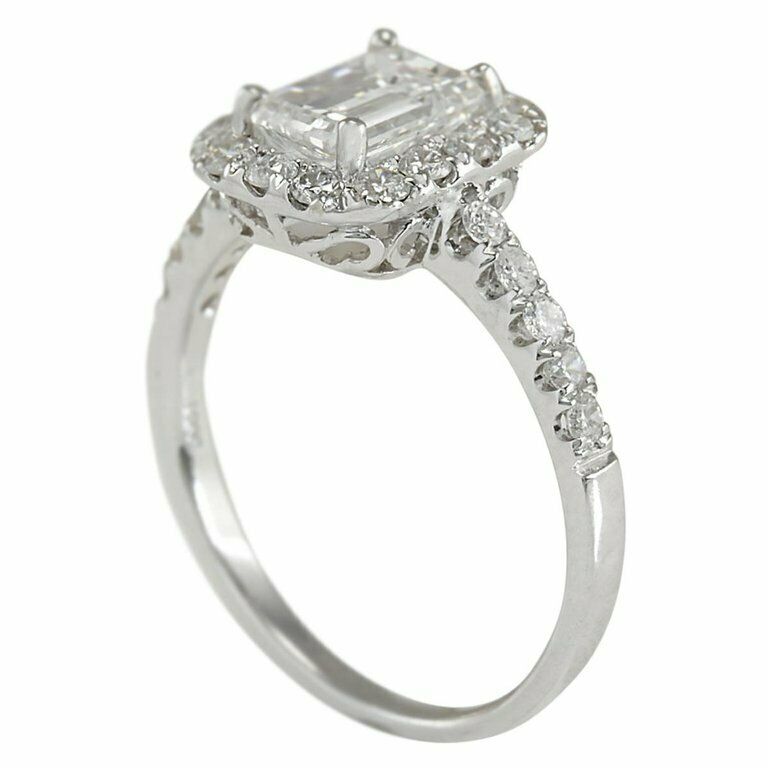 1.2ct Emerald Cut Diamond Engagement Ring Halo Round Accent 14k White Gold Finish