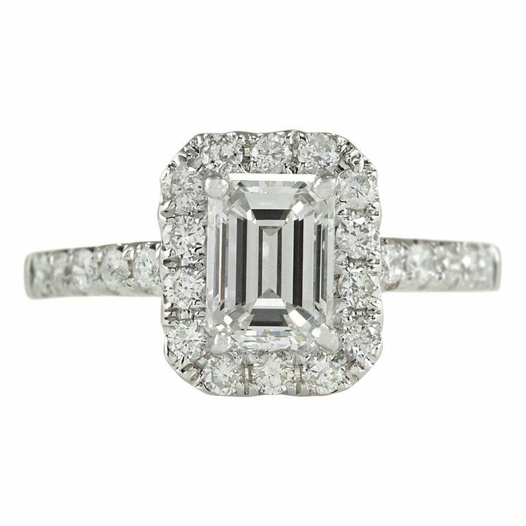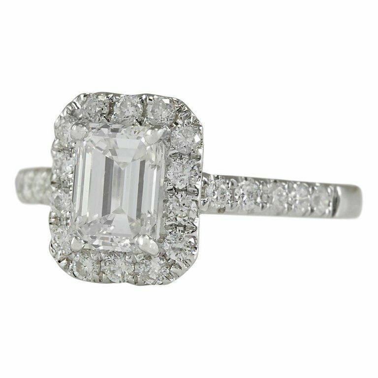 1.2ct Emerald Cut Diamond Engagement Ring Halo Round Accent 14k WhiteGold Finish