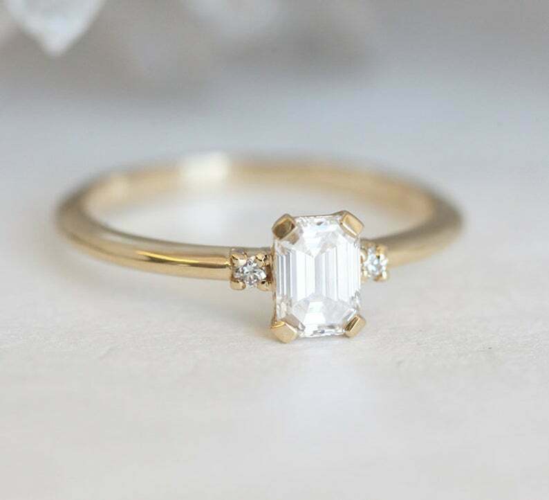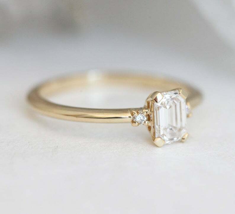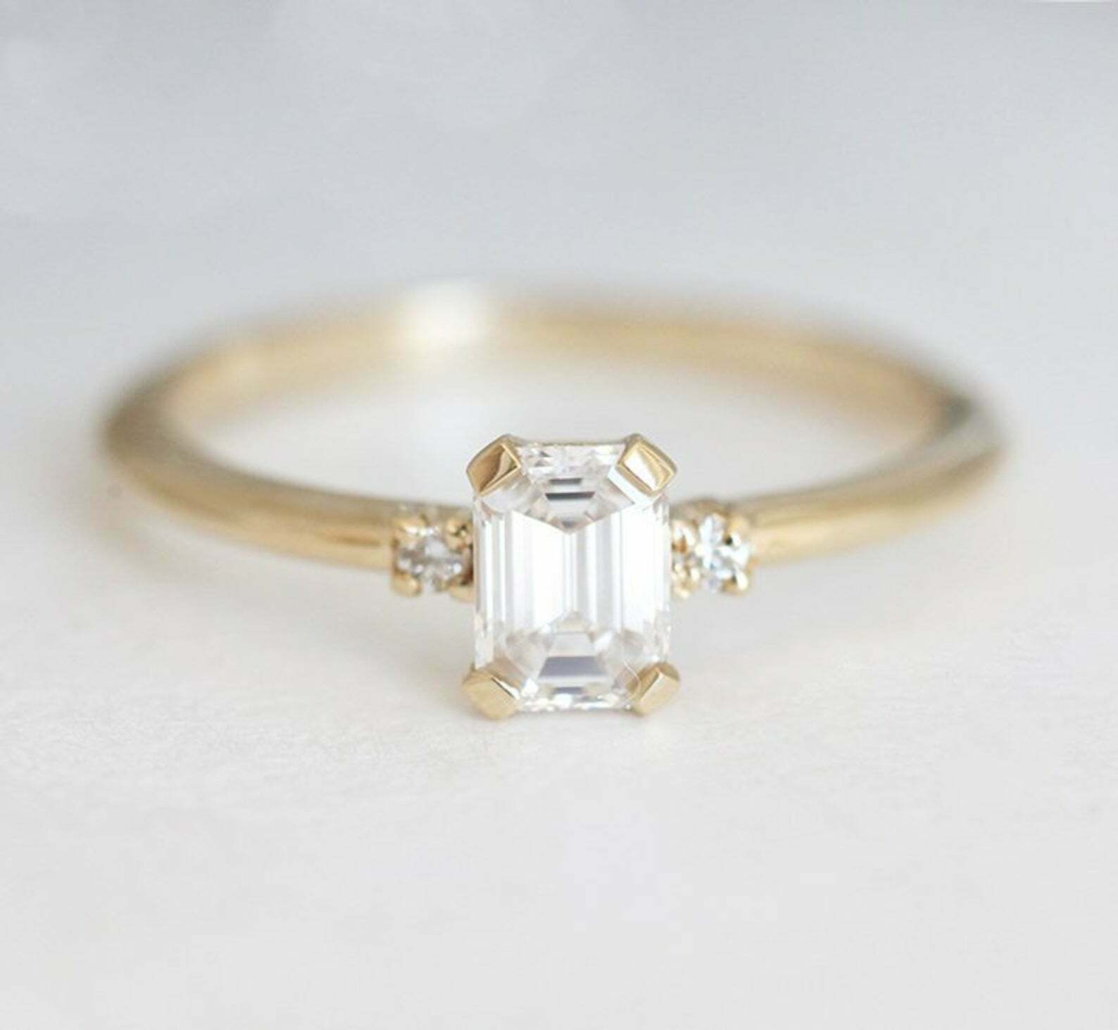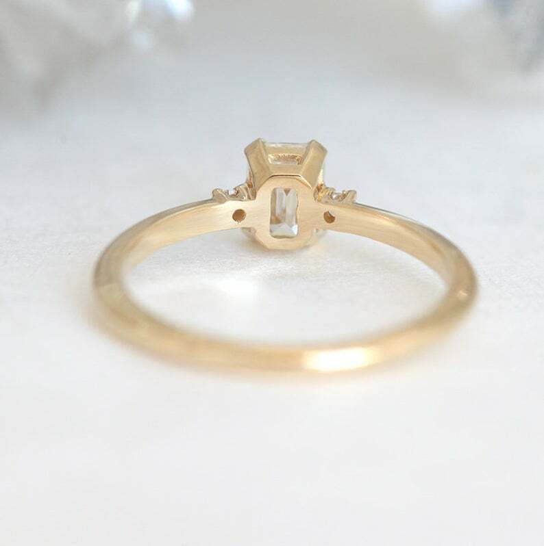 1.2ct Emerald Cut Diamond Engagement Ring 14k Yellow Gold Finish Round Accents Trilogy