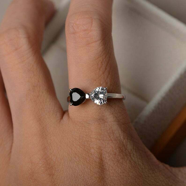 1.2ct Engagement Ring Heart Cut Black & White Diamond Bow Knot 14k White Gold Finish