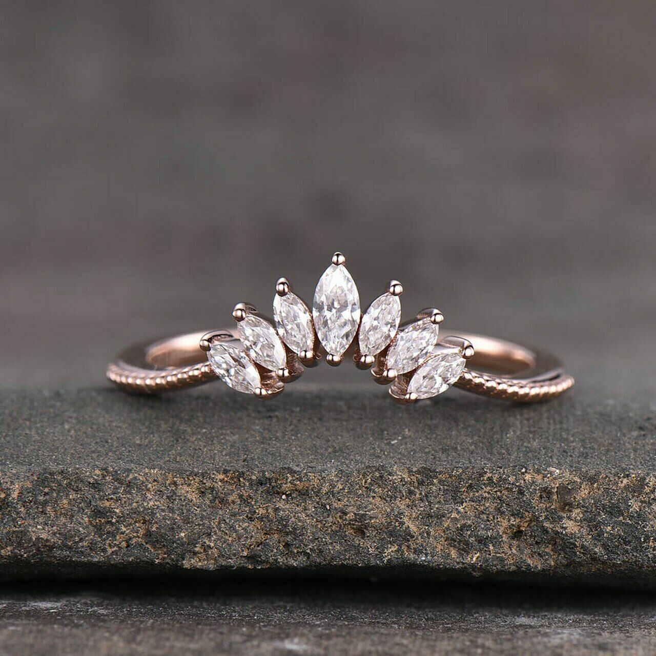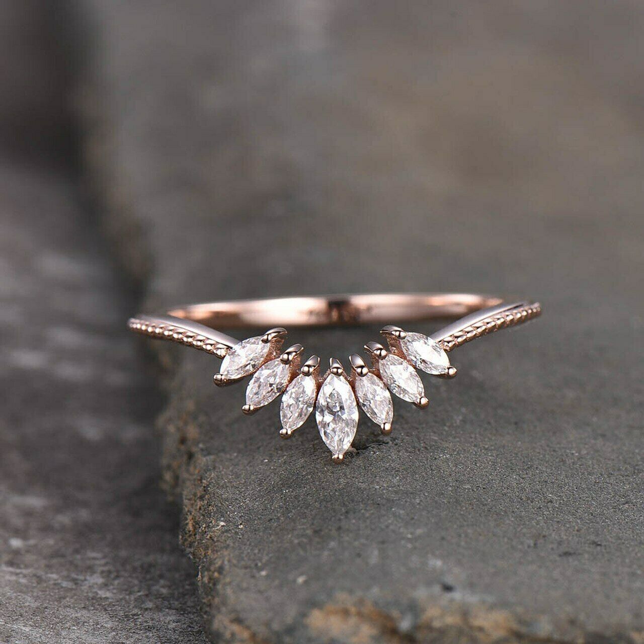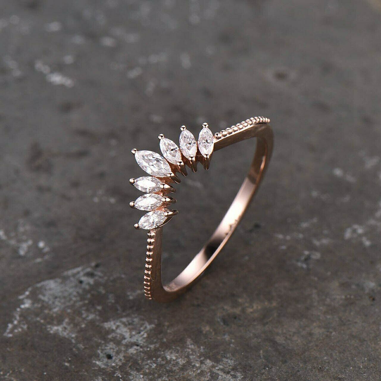 1.2ct Engagement Ring Marquise Cut Diamond Solitaire Crown 14k Rose Gold Finish
