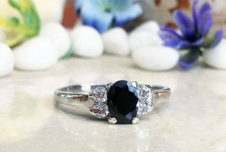 1.2ct Engagement Ring Oval Cut Black Diamond Solitaire 14k White Gold Finish