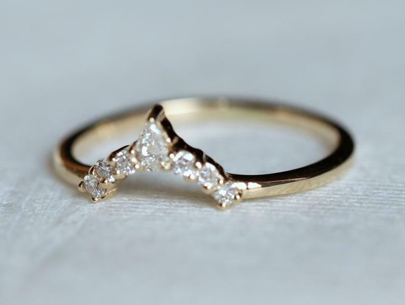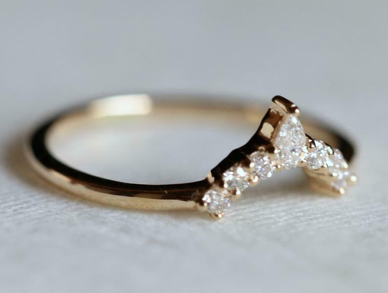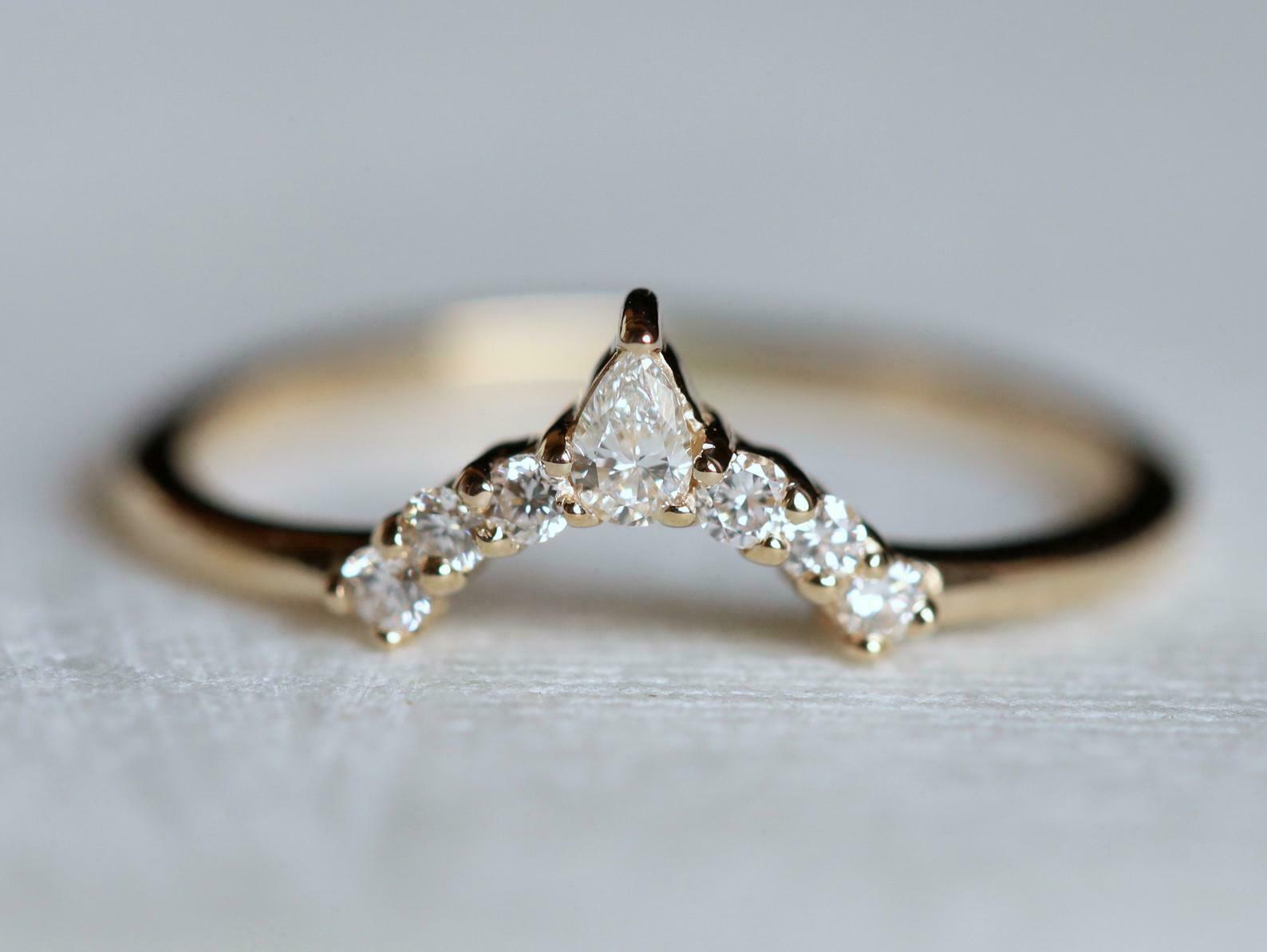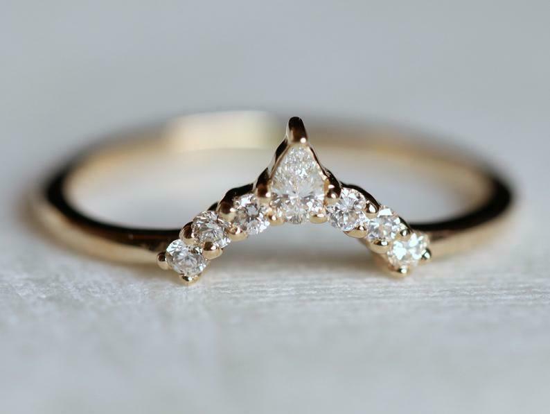 1.2ct Engagement Ring Pear Cut Diamond Crown Minimalist 14k Yellow Gold Finish