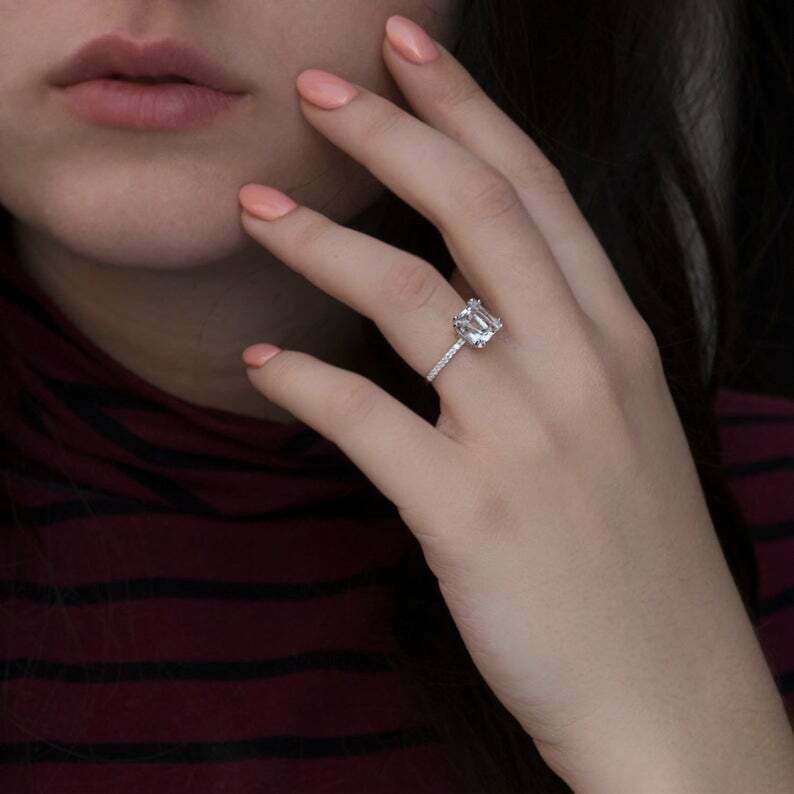 1.2ct Engagement Ring Princess Cut Diamond Accents Solitaire 14k White Gold Over