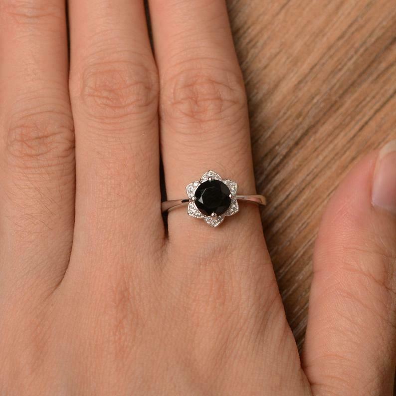 1.2ct Engagement Ring Round Cut Black Diamond Flower Solitaire 14k White Gold Finish