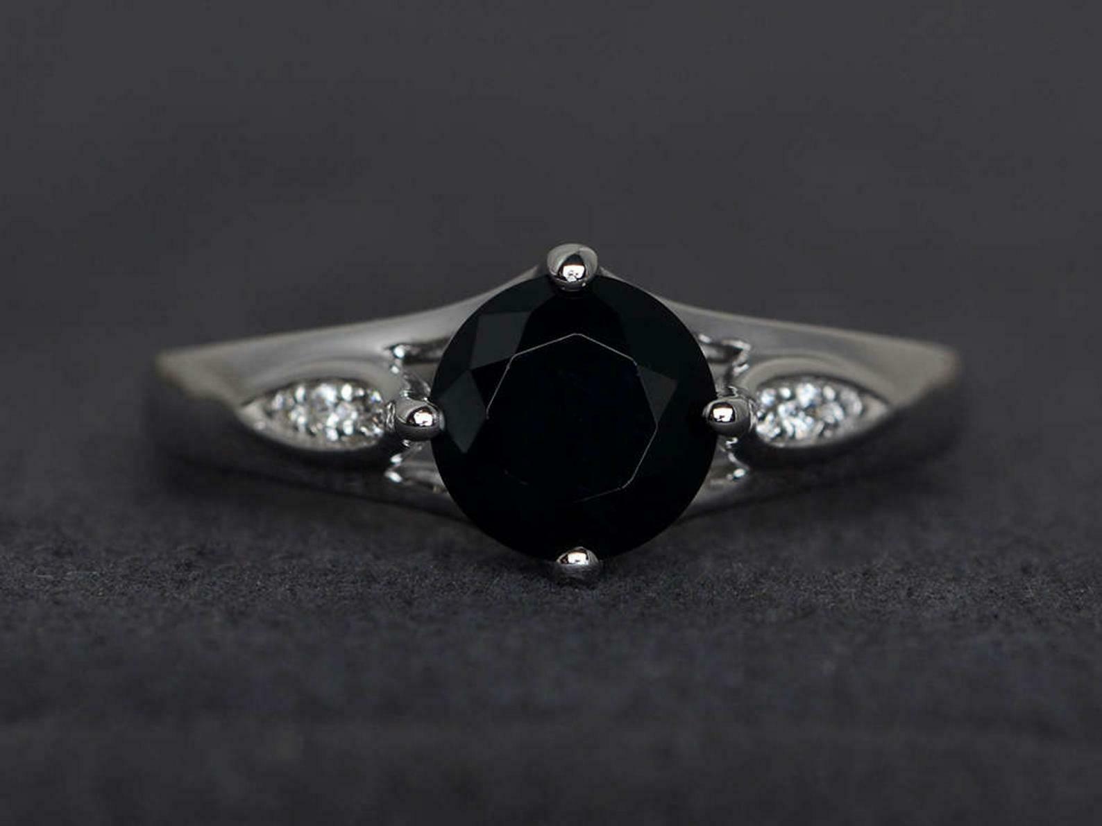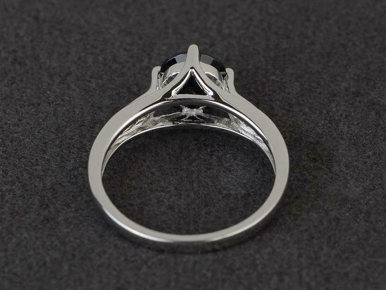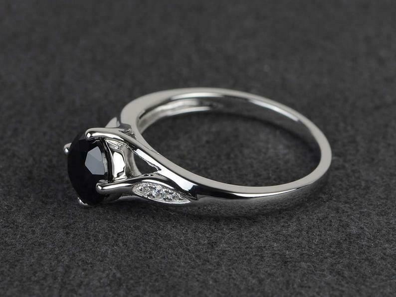 1.2ct Engagement Ring Round Cut Black Diamond Solitaire 14k White Gold Finish