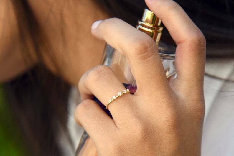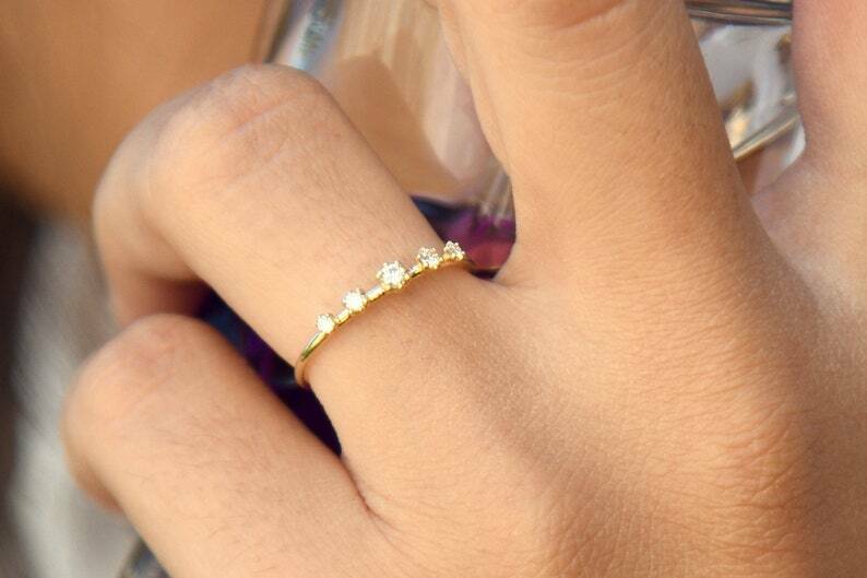 1.2ct Engagement Ring Round Cut Diamond 5 Stone Minimalist 14k Yellow Gold Over