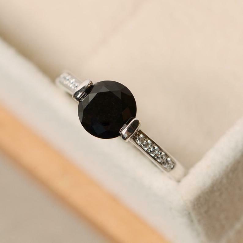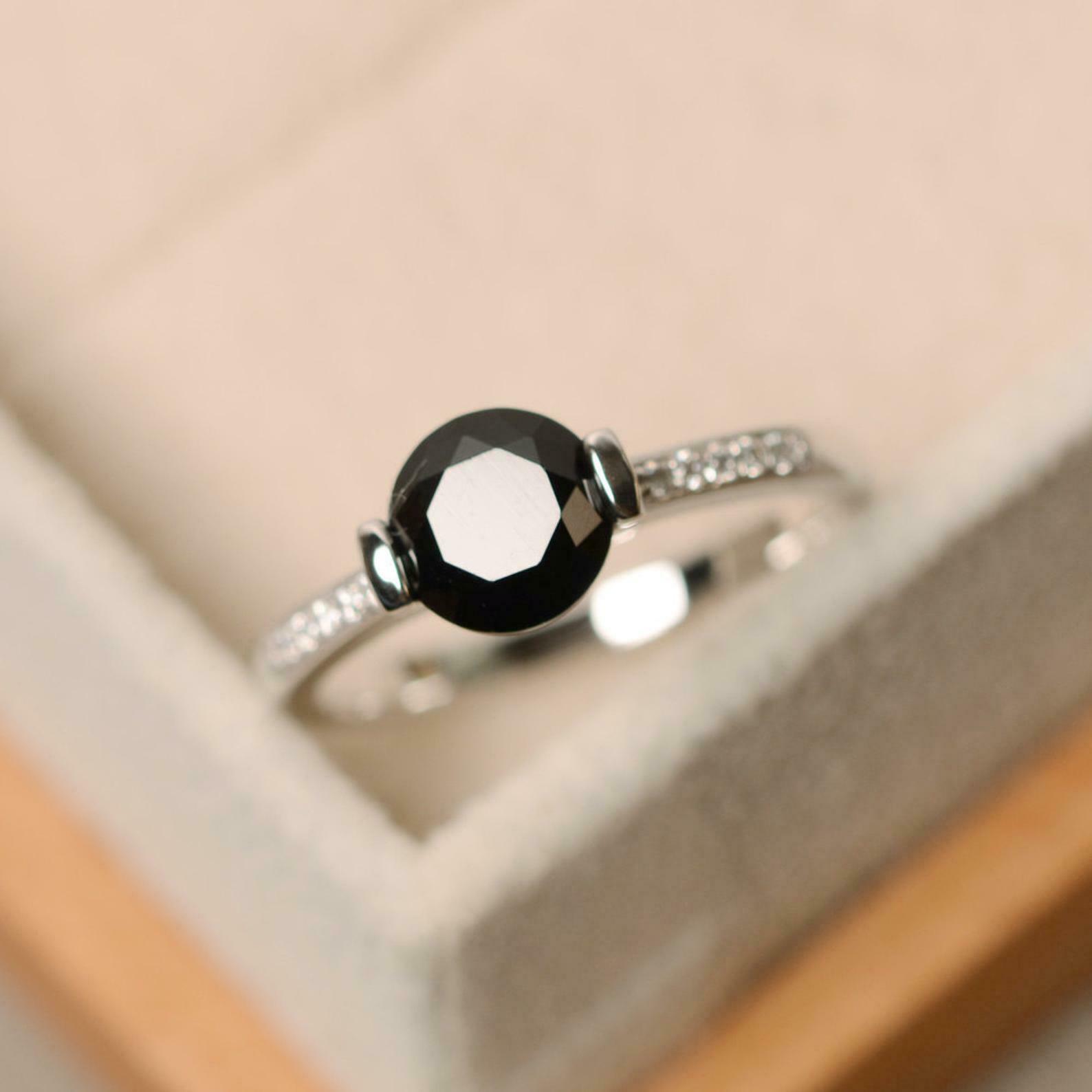 1.2ct Engagement Ring Round Cut Black Diamond Accents Solitaire 14k White Gold Finish