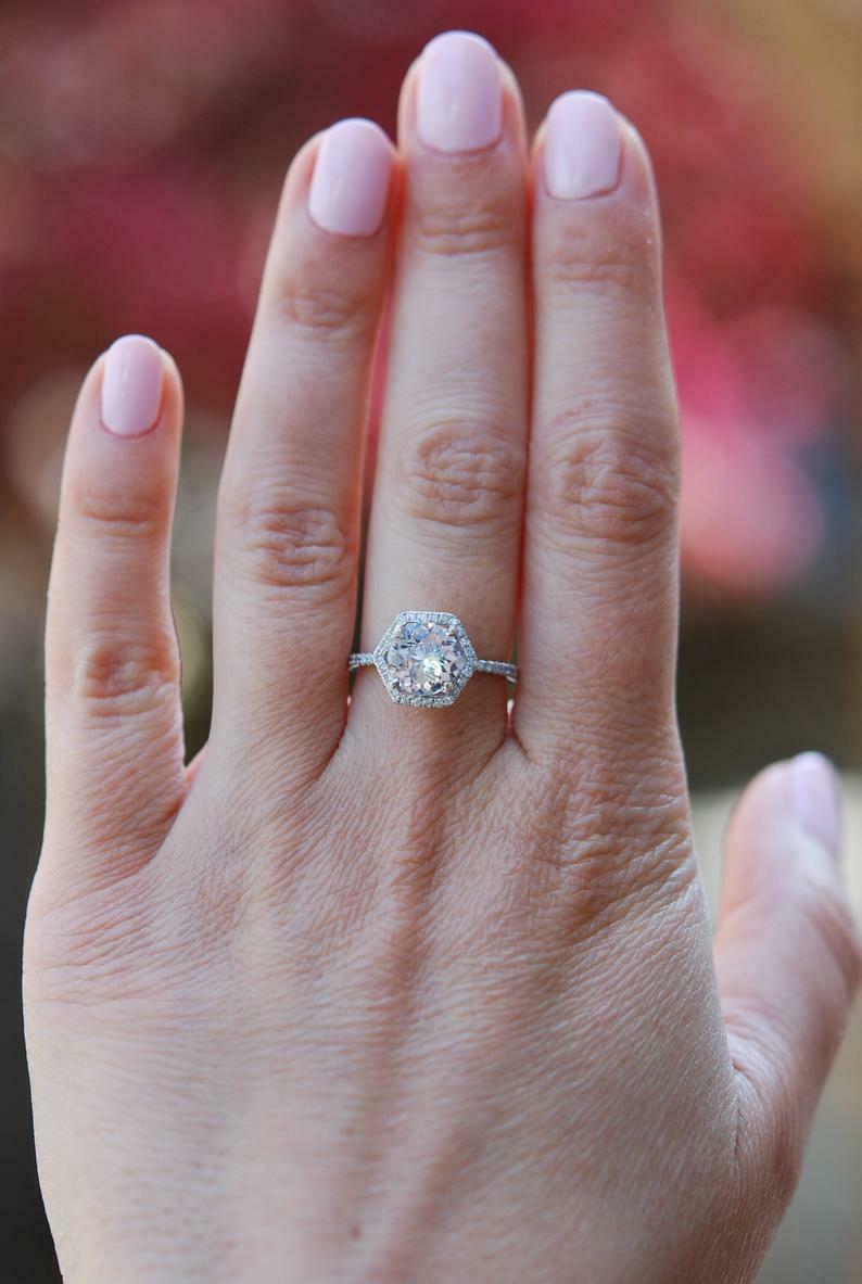 1.2ct Engagement Ring Round Cut Diamond Unique Hexagon Halo 14k White Gold Finish