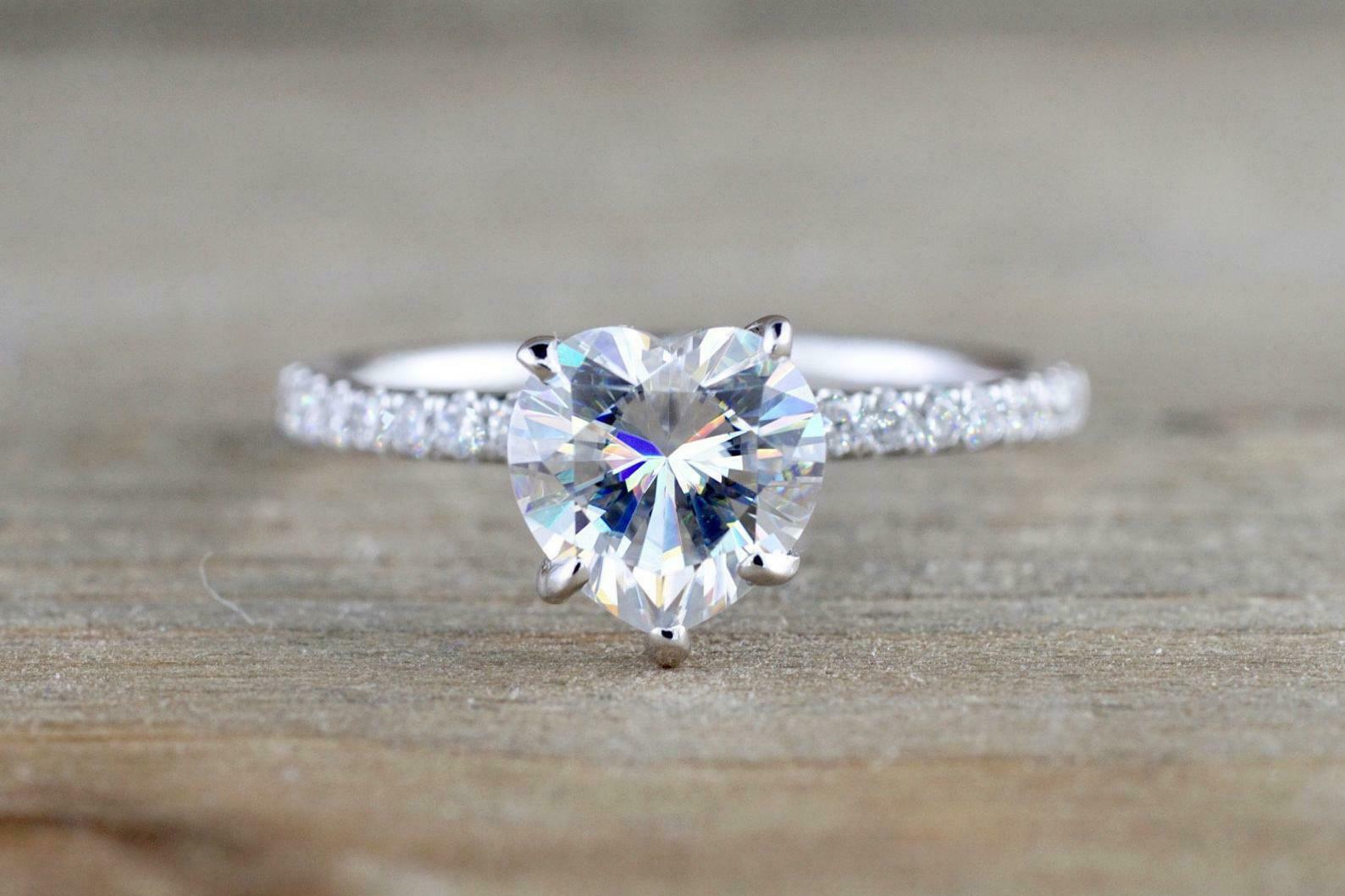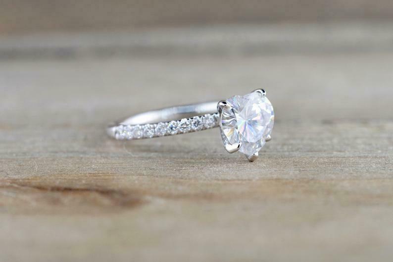 1.2ct Heart Diamond Engagement Ring 14k White Gold Finish Solitaire with Accents
