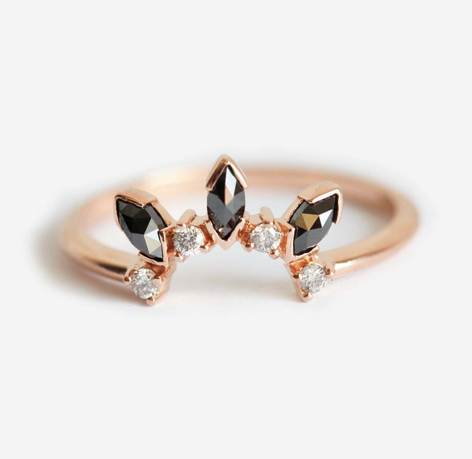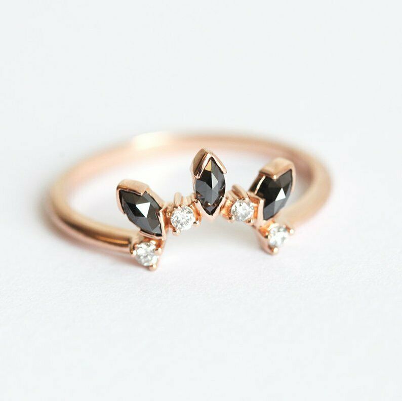 1.2ct Marquise Cut Black Diamond Engagement Ring 14k Rose Gold Over Crown Tiara