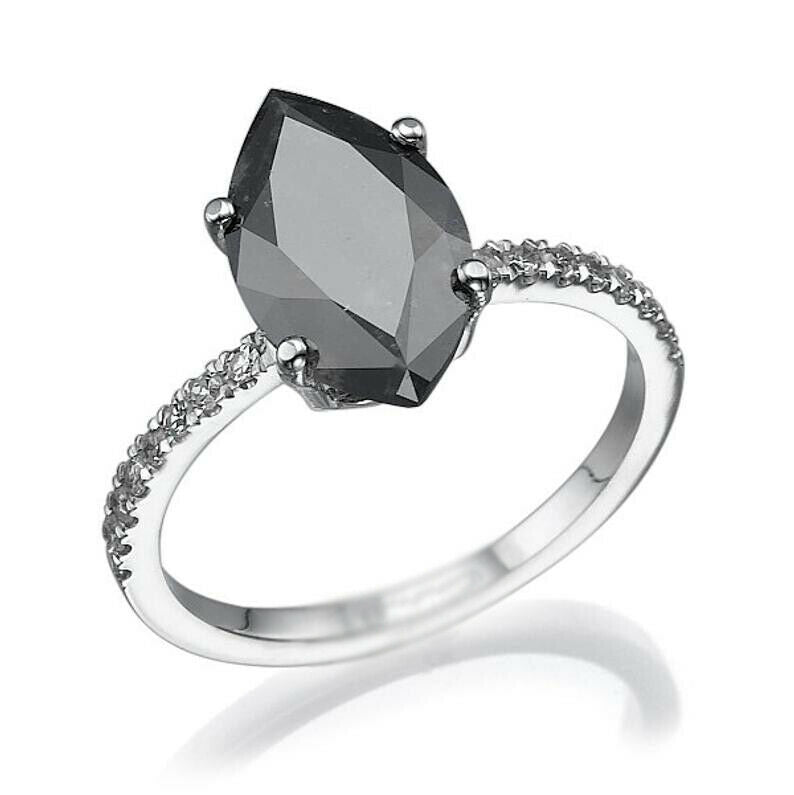 1.2ct Marquise Cut Black Diamond Solitaire with Accent Ring 14k WhiteGold Finish