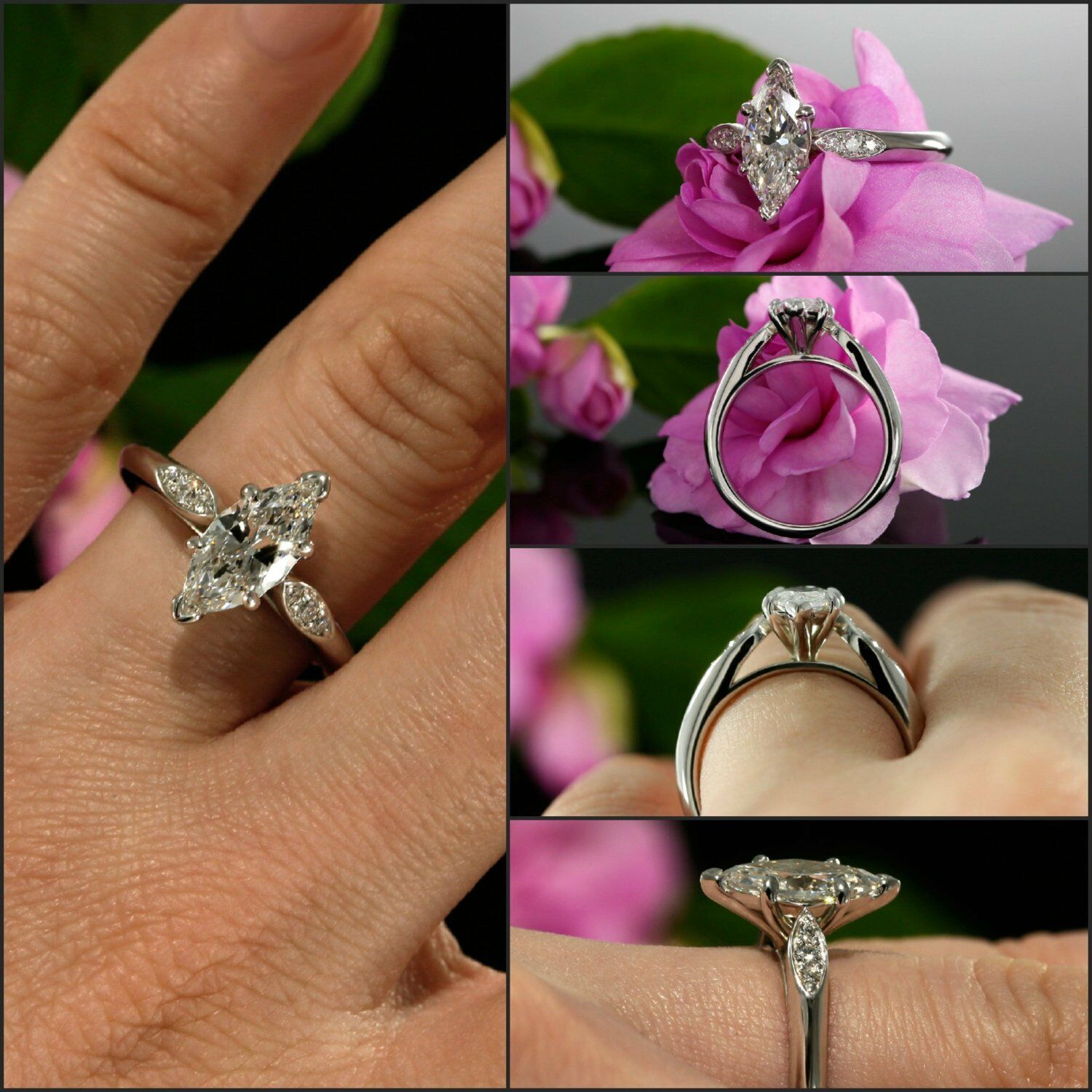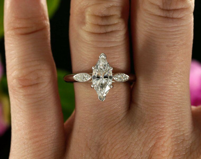 1.2ct Marquise Cut Diamond Unique Minimal Engagement Ring 14k White Gold Finish