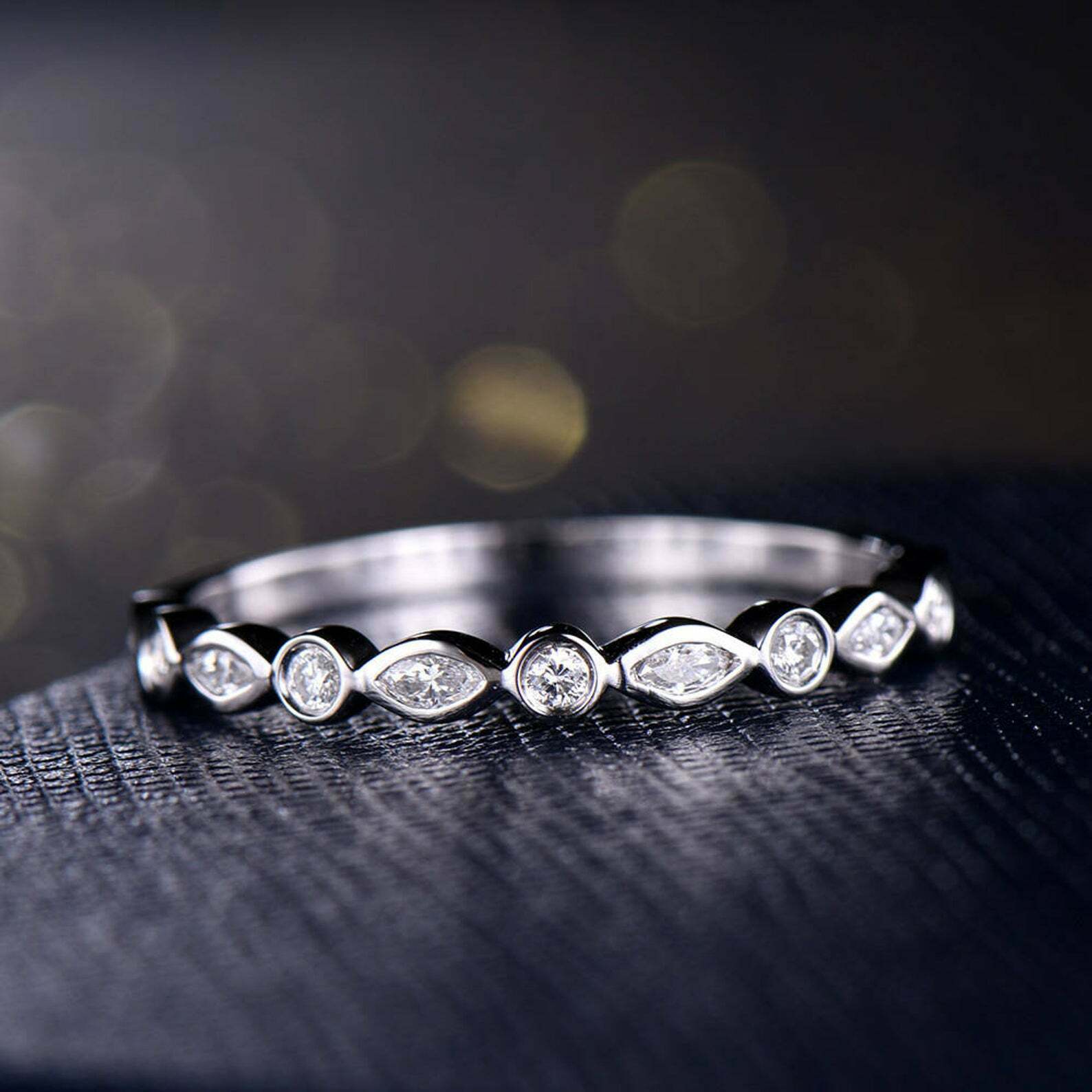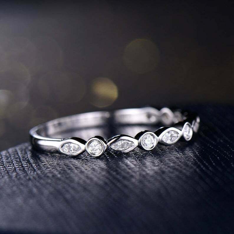 1.2ct Marquise Cut Diamond Wedding Band Bezel Set Eternity 14k White Gold Finish