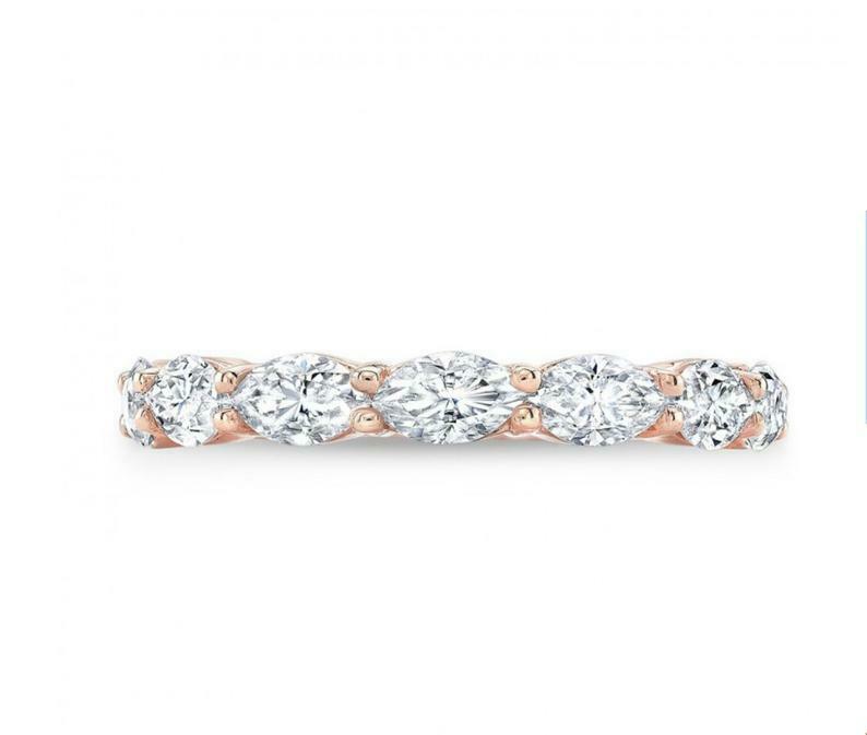 1.2ct Marquise Cut VVS1D Diamond Wedding Band 14k Rose Gold Finish Full Eternity