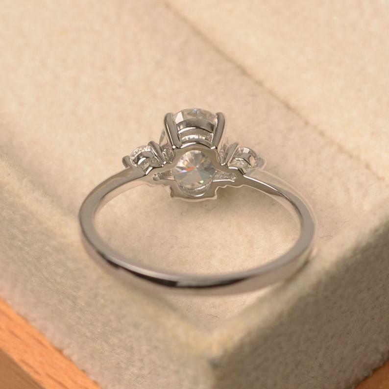 1.2ct Oval Cut Diamond Engagement Ring Minimalist Trilogy 14k White Gold Finish