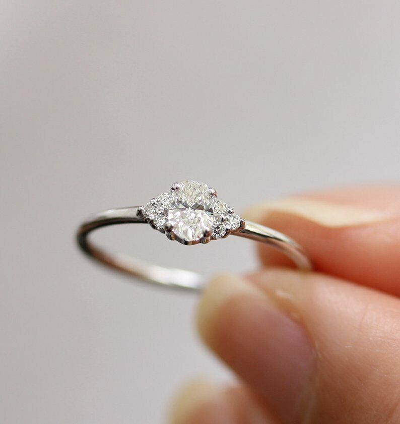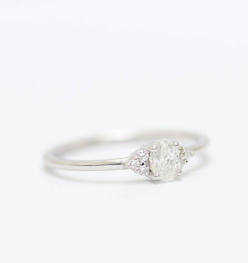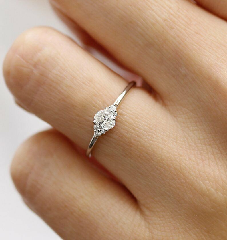 1.2ct Oval Cut Diamond Engagement Ring Petite Minimalist 14k White Gold Finish