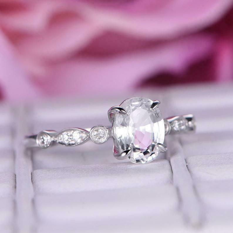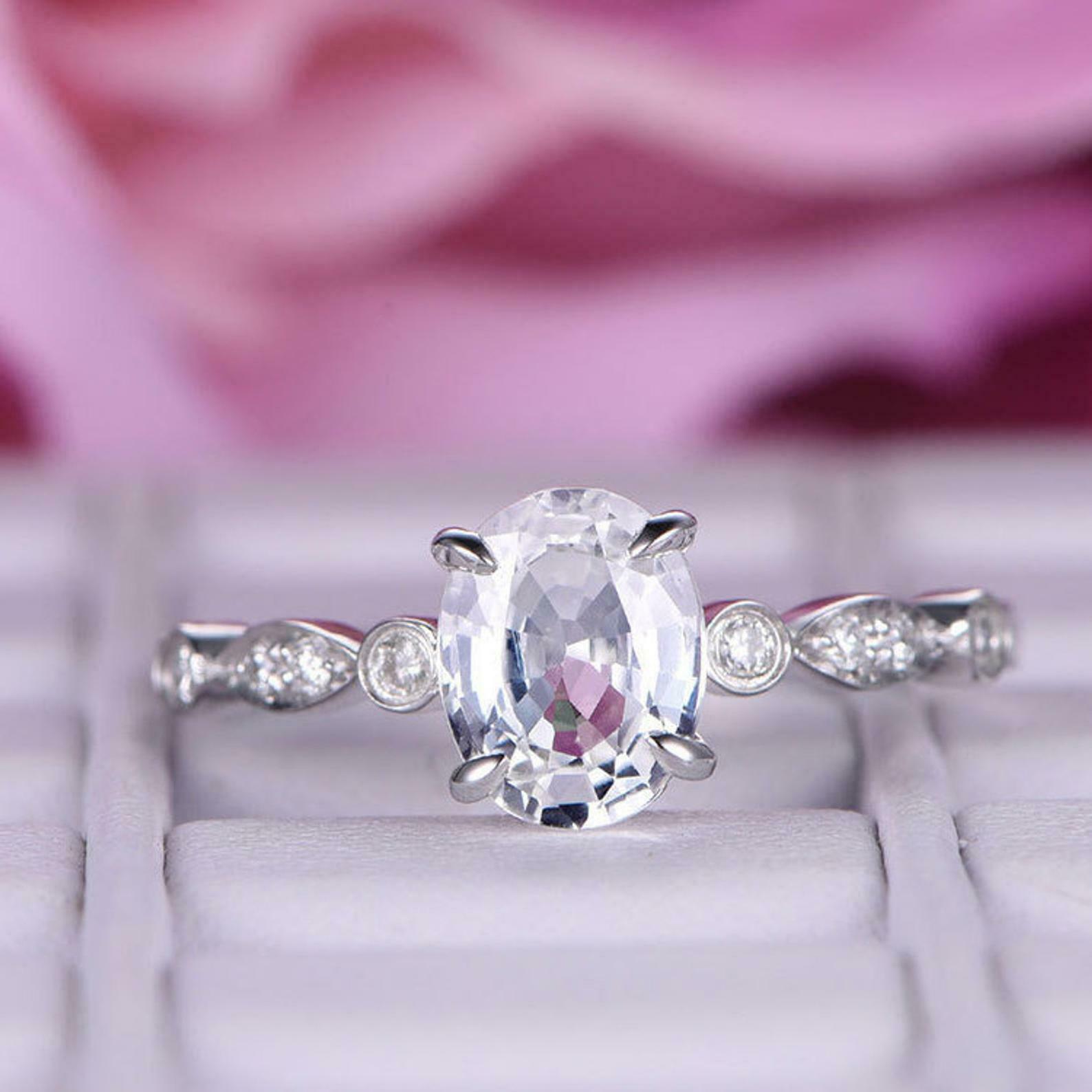 1.2ct Oval Cut Diamond Engagement Ring Solitaire with Accent 14k White Gold Over