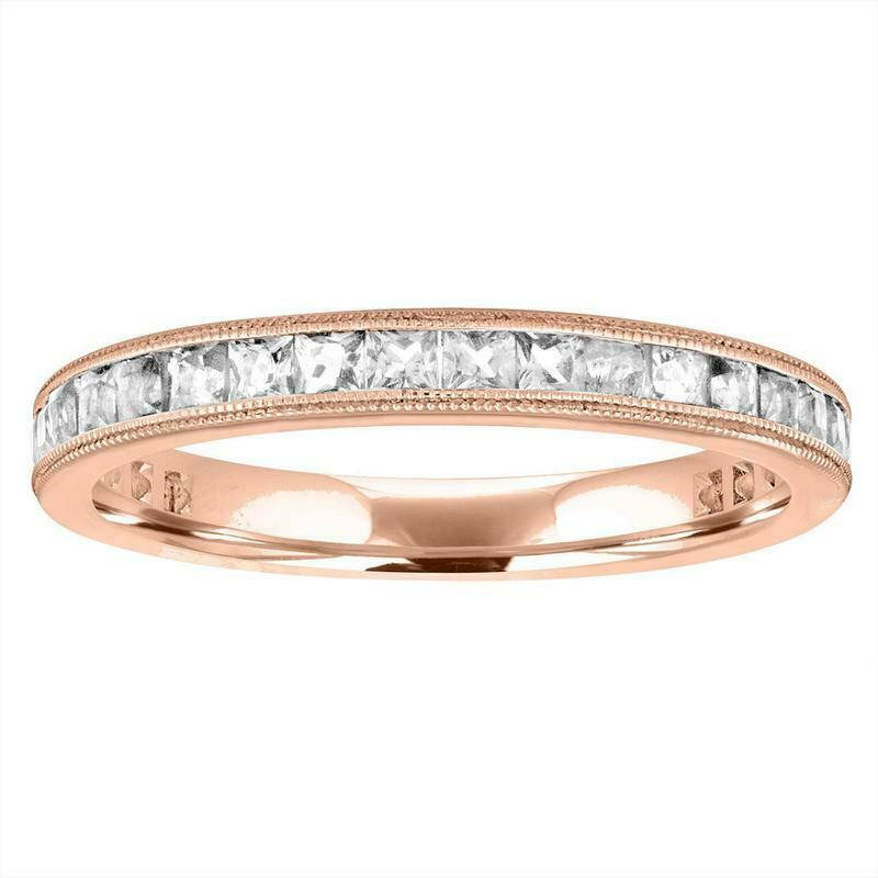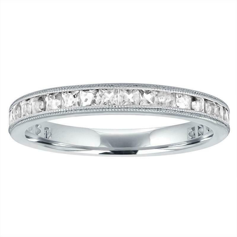 1.2ct Princess Cut Diamond Wedding Band 14k White Gold Finish Milgrain Half Eternity