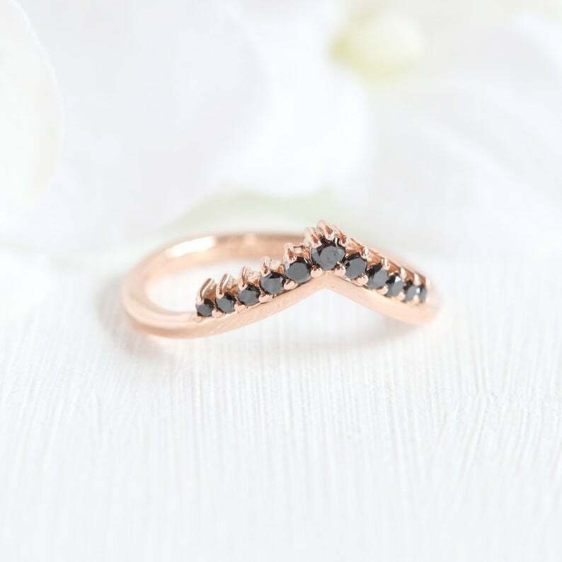 1.2ct Round Cut Black Diamond Tiara Crown Stackable Wedding Band 14k RoseGold Finish
