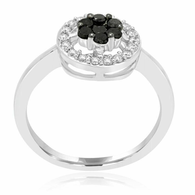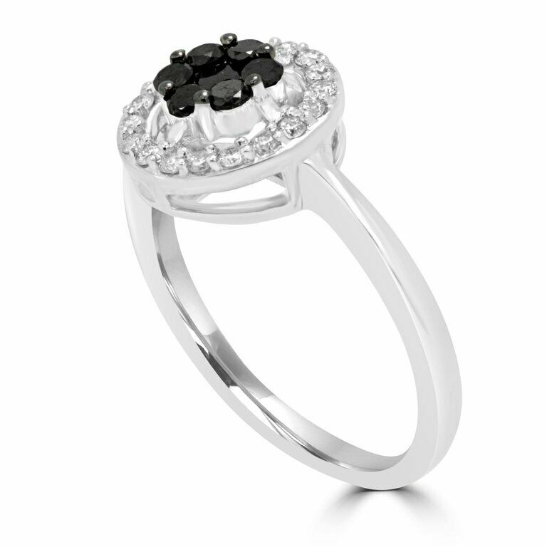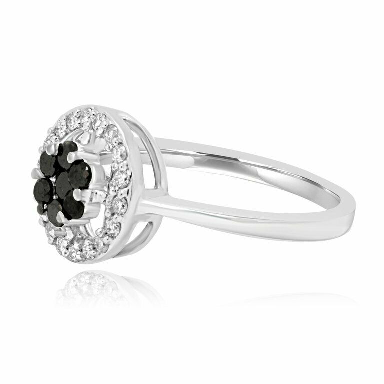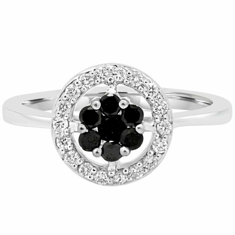 1.2ct Round Cut Black Diamond Engagement Ring Halo Floral 14k White Gold Finish