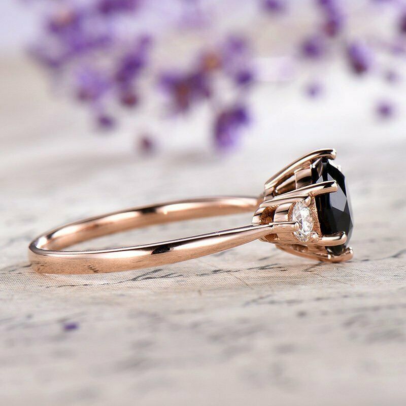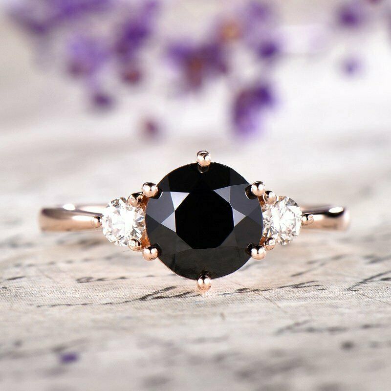 1.2Ct Round Cut Black Diamond Trilogy Women Engagement Ring 14K Rose Gold Finish