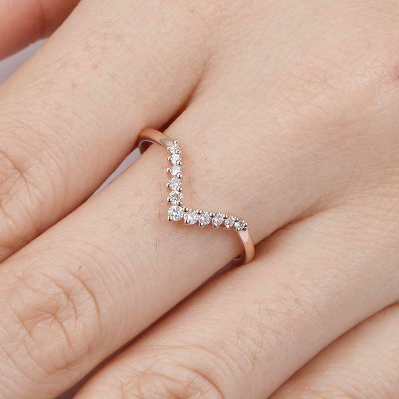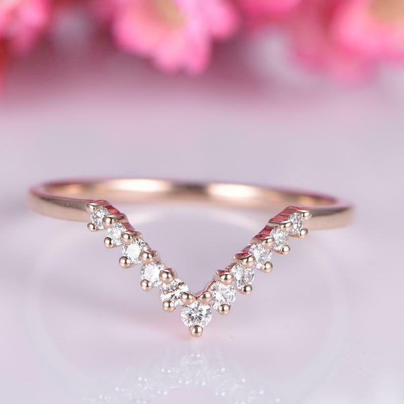 1.2ct Round Cut Diamond Curved V Shape Wedding Band Ring 14k Rose Gold Finish
