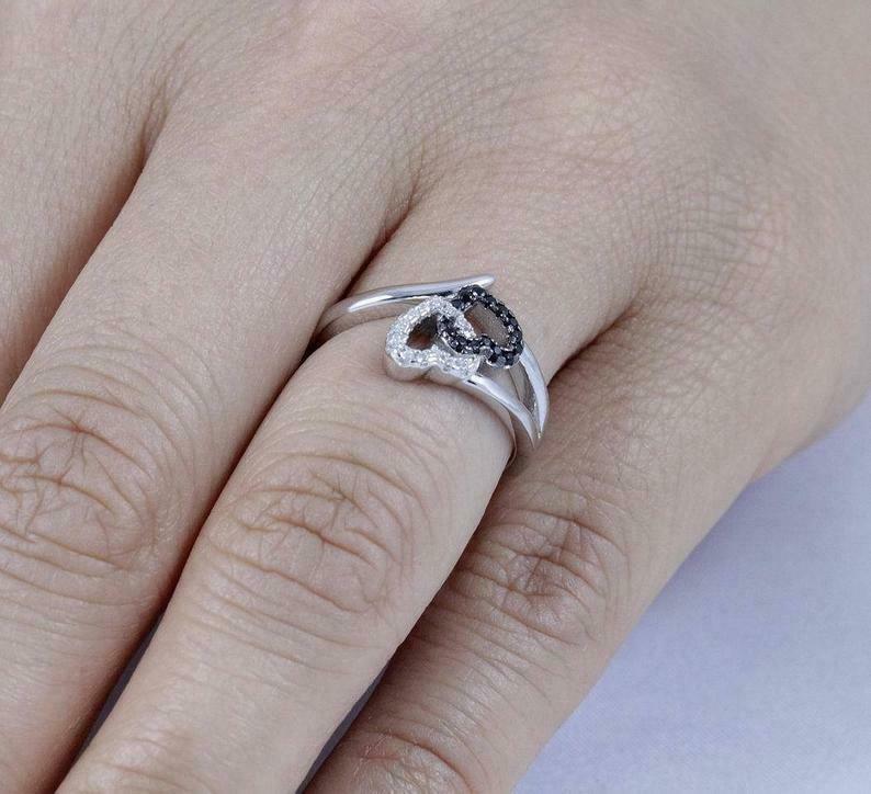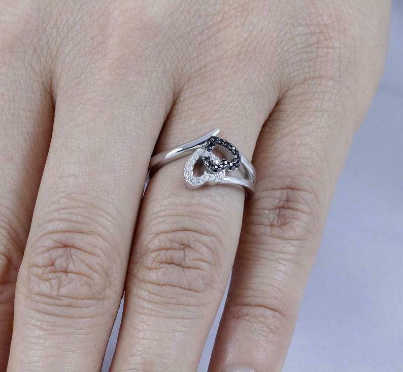 1.2ct Round Cut Diamond Dual Open Heart Bypass Style Ring 14k White Gold Finish